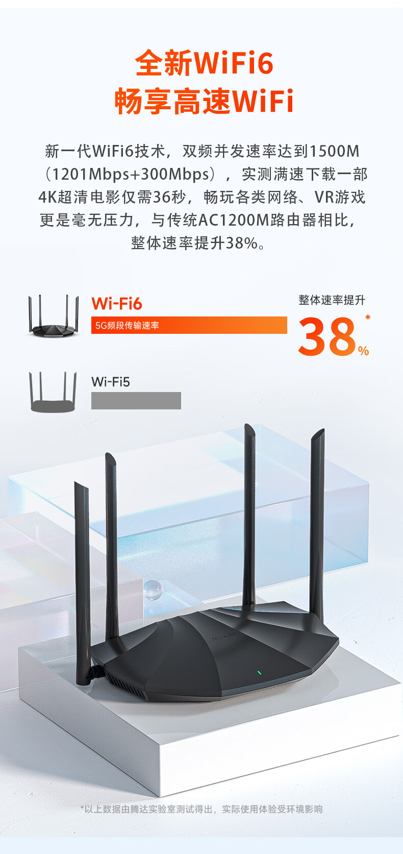 腾达(Tenda)AX2 AX1500 WiFi6千兆无线路由器 5G双频 智能家用穿墙高速路由 IPv6