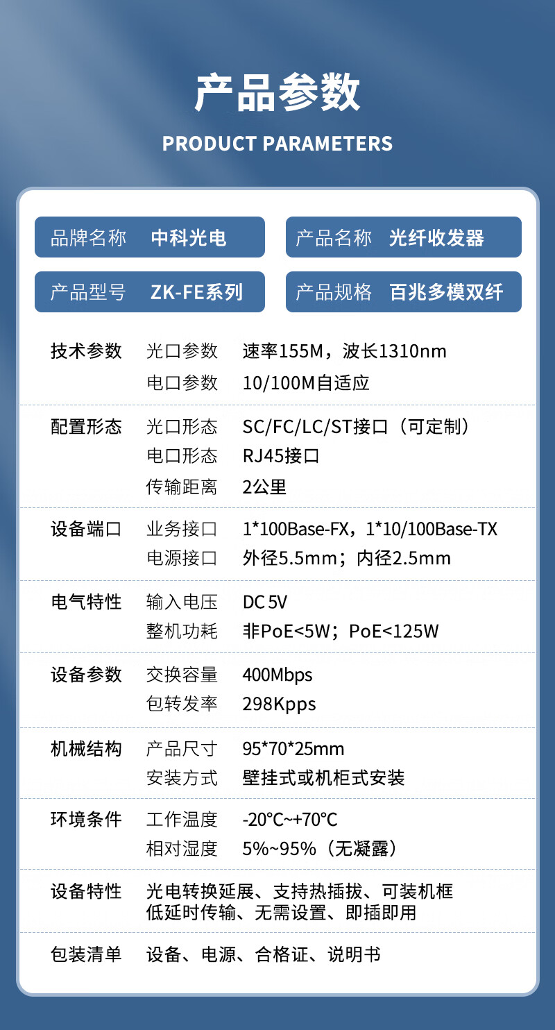 中科光电 多模光纤收发器 百兆光纤收发器 多模双纤光纤收发器 光电转换器多模