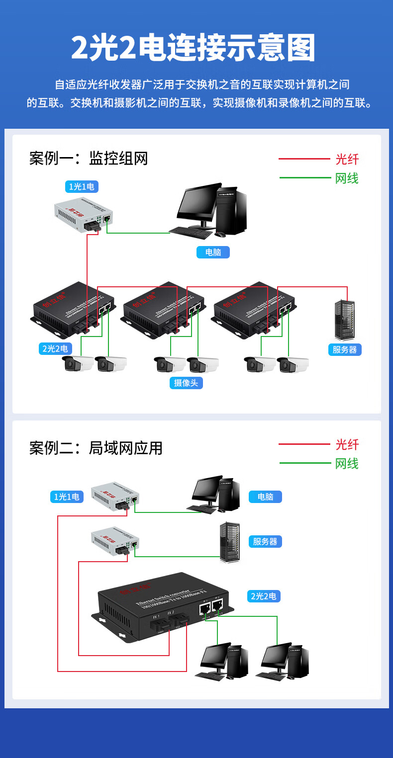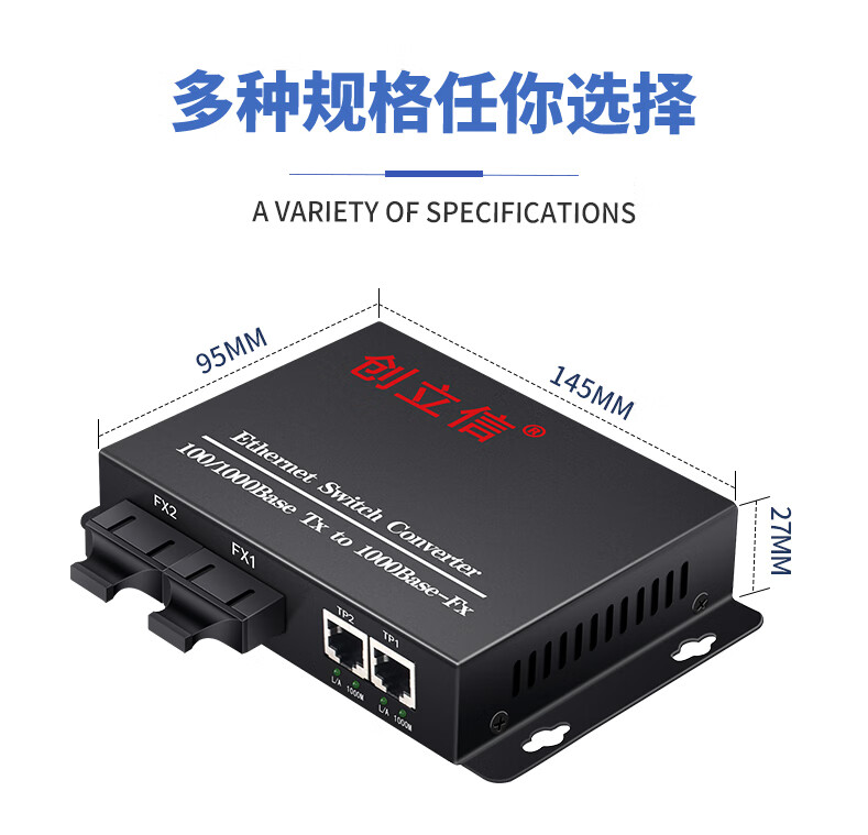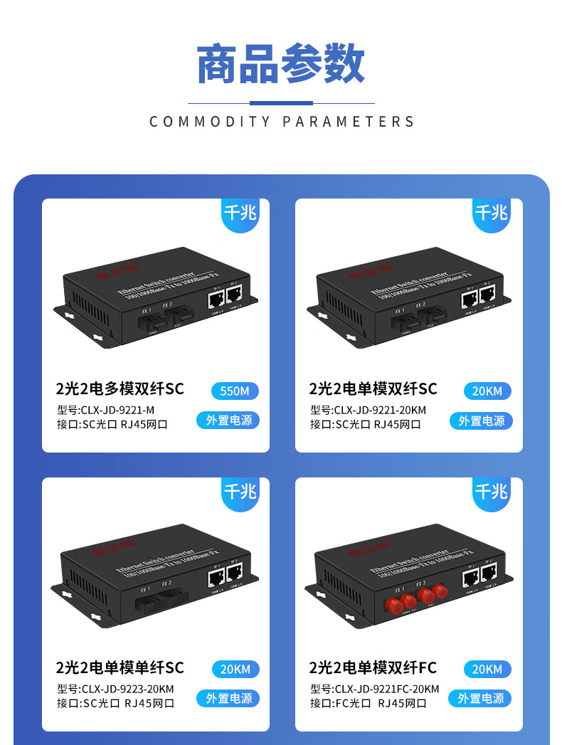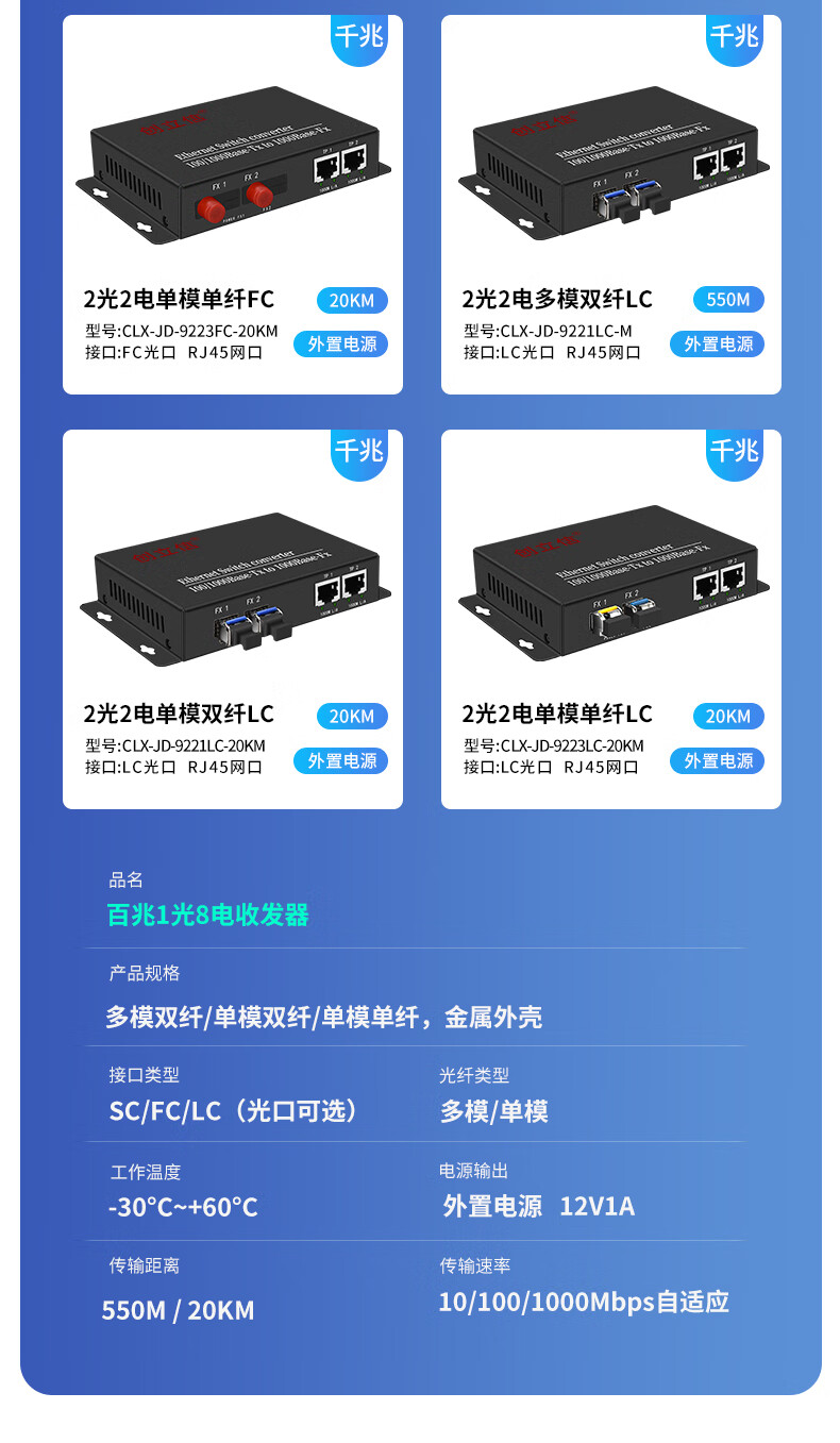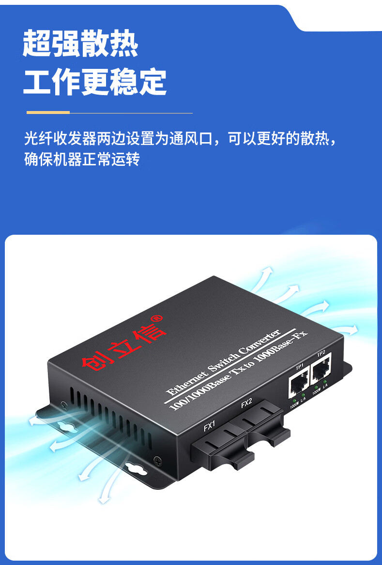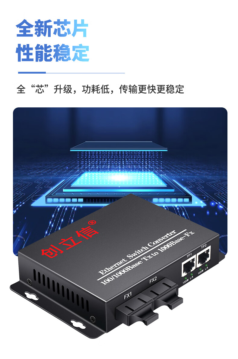 创立信 光纤收发器 光电转换器 网络光端机 千兆2光2电单模单纤FC外电20KM 1台