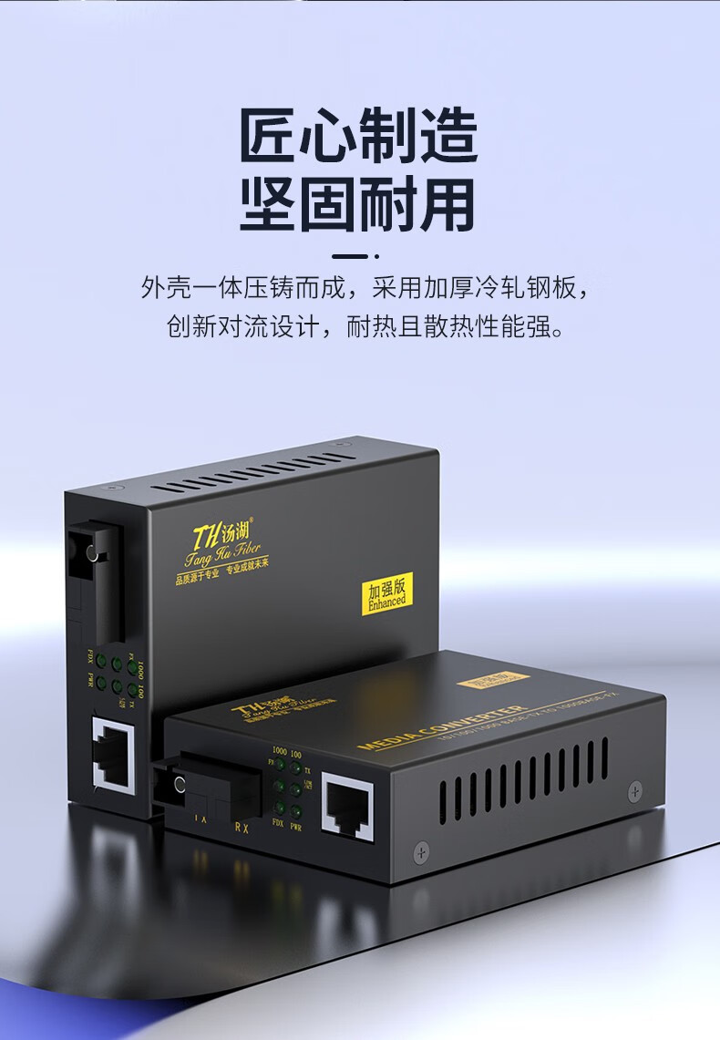 汤湖 千单模单纤光纤收发器一光一电/一光四电/光电转换器一对加强版20/40/60/80km 千兆单模单纤1光4电+1光1电1对