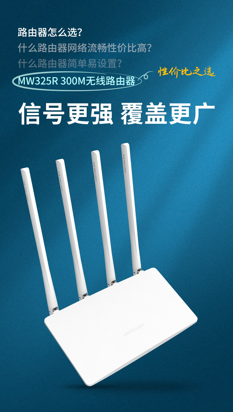 水星(MERCURY)MW325R无线路由器wifi穿墙王 300兆智能家用大功率增强