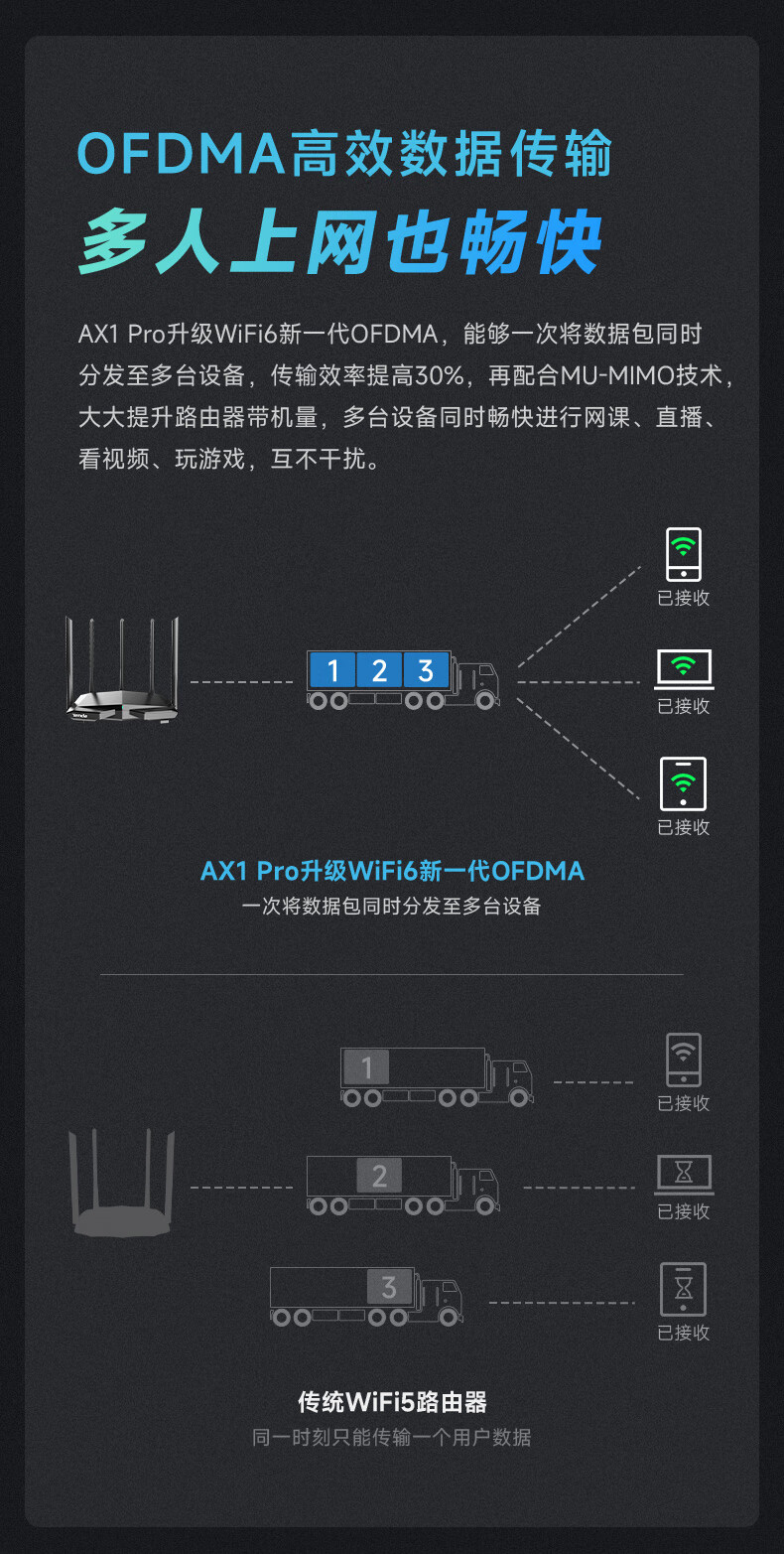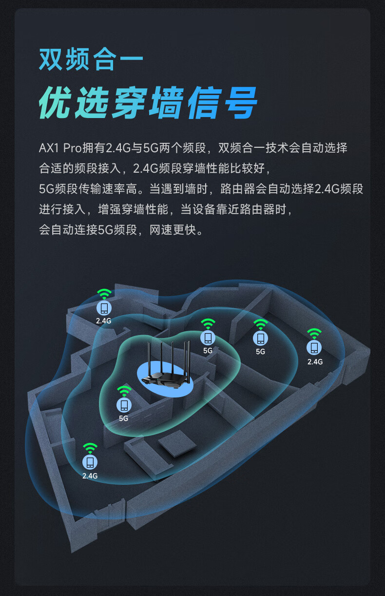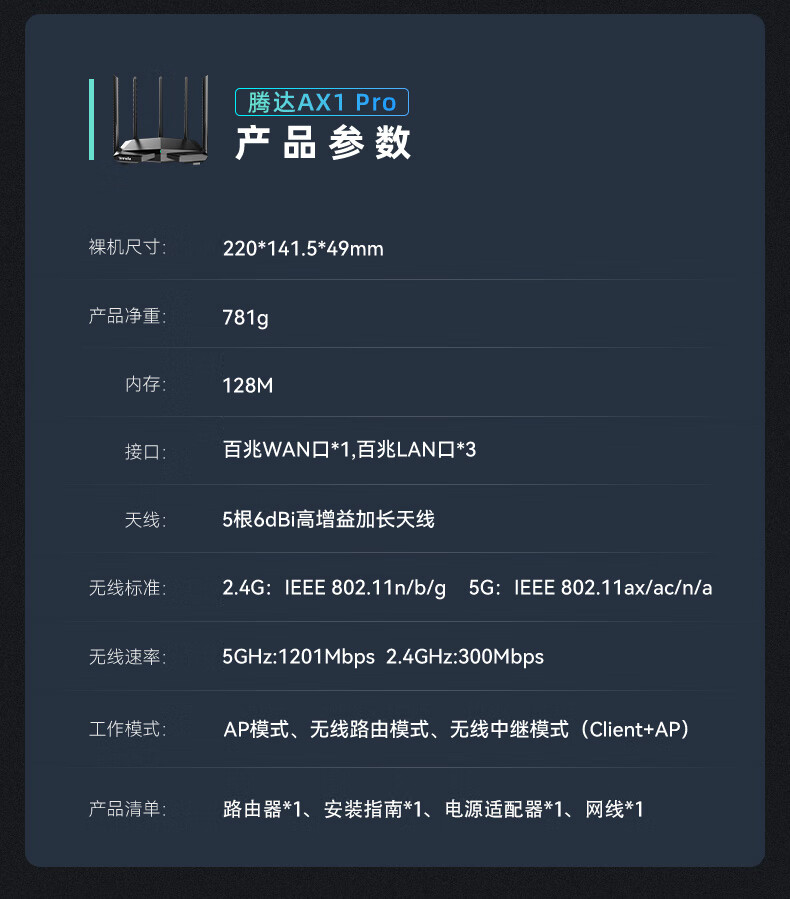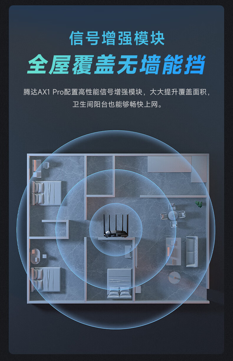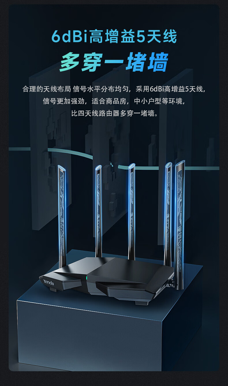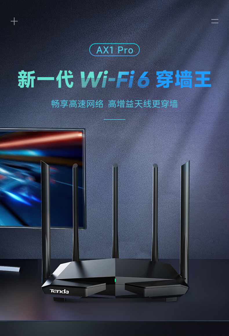 腾达(Tenda)AX1 Pro WiFi6无线路由器 1500M智能5G双频 家用五天线穿墙游戏路由