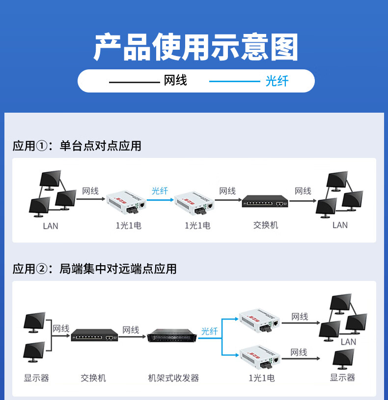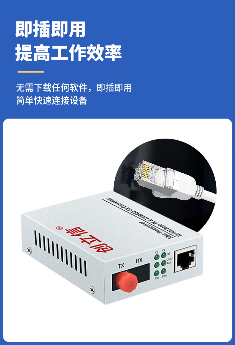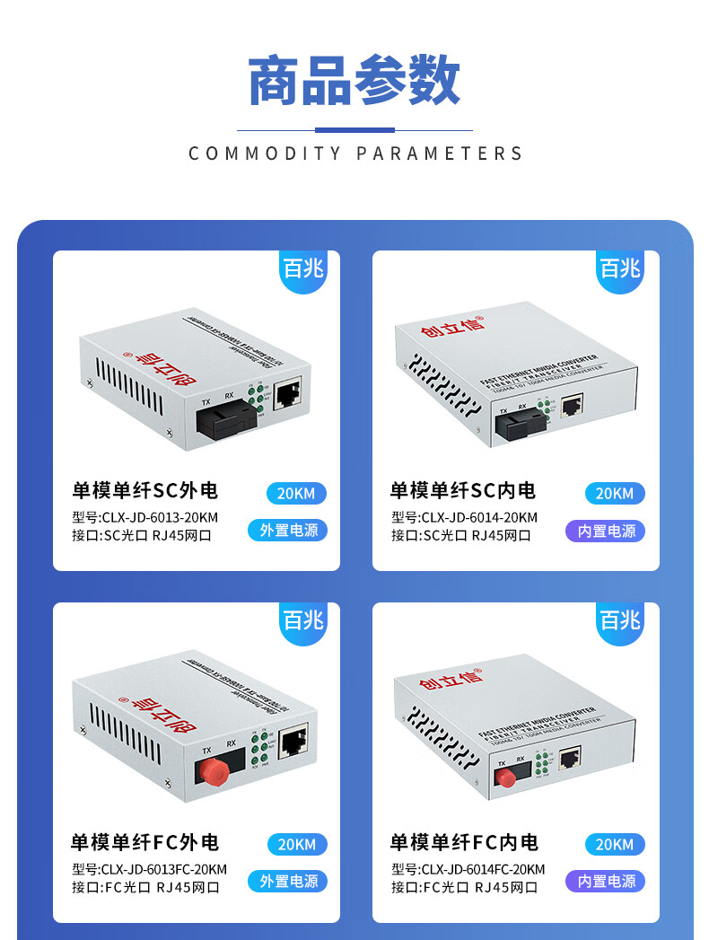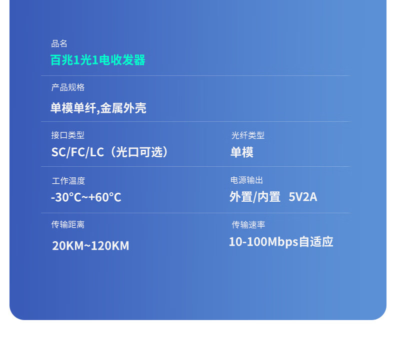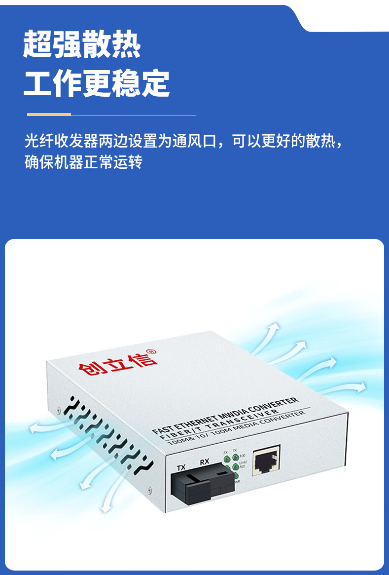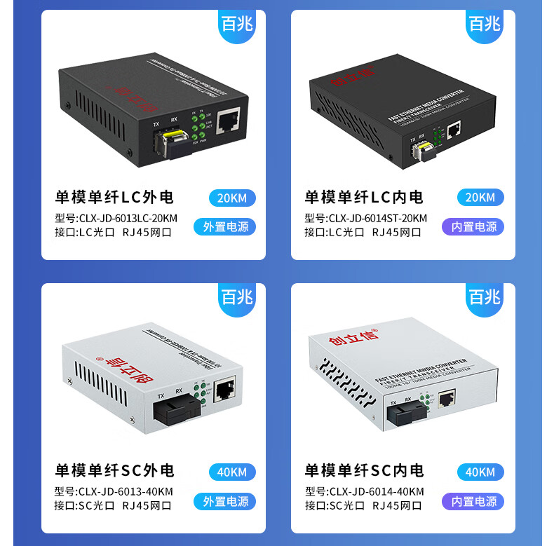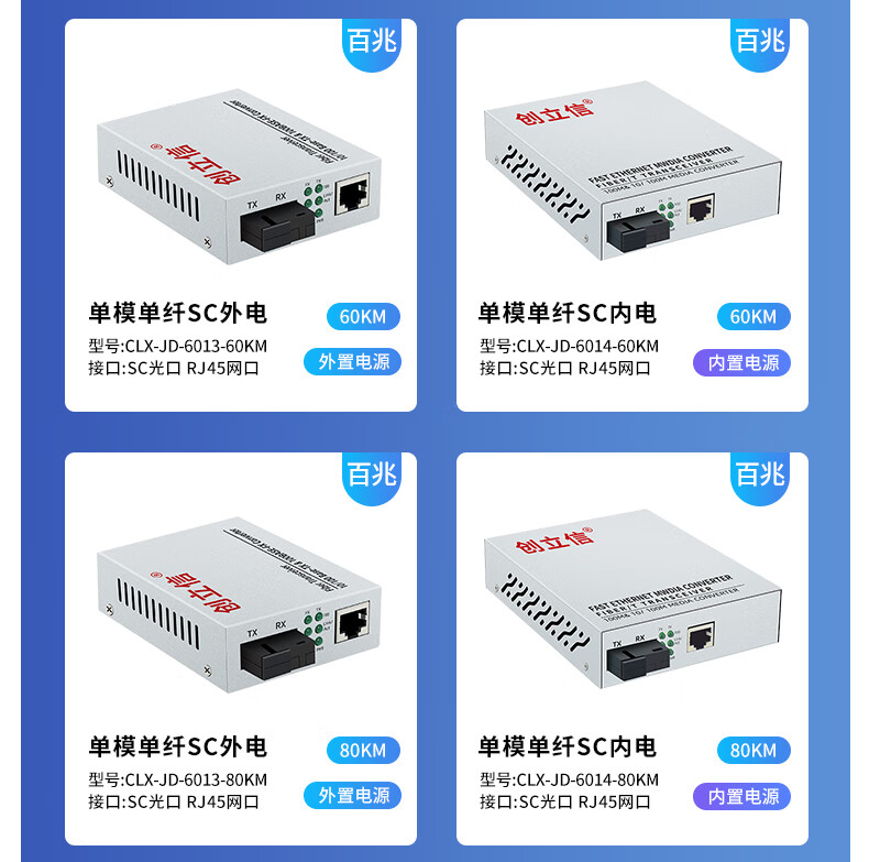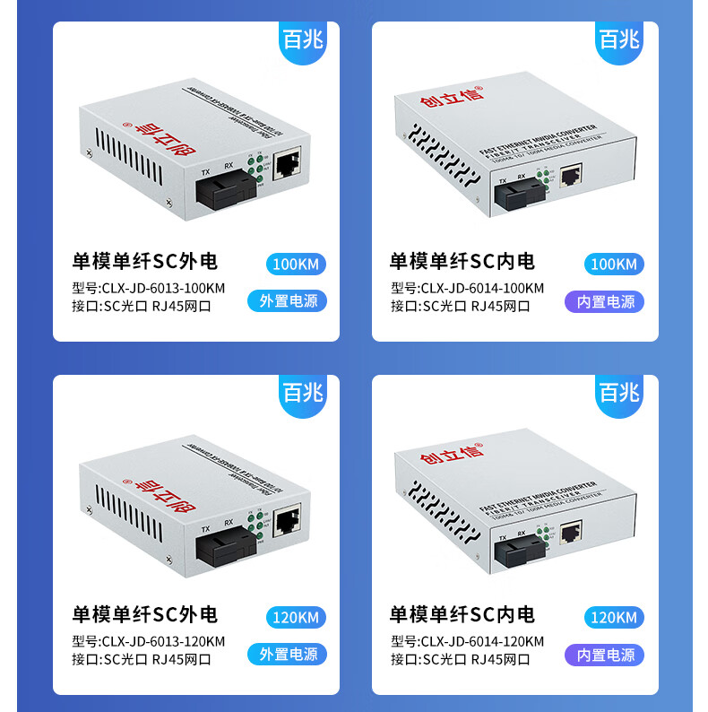 创立信 光纤收发器 光电转换器 网络光端机 百兆1光1电单模单纤SC内电120KM 1台