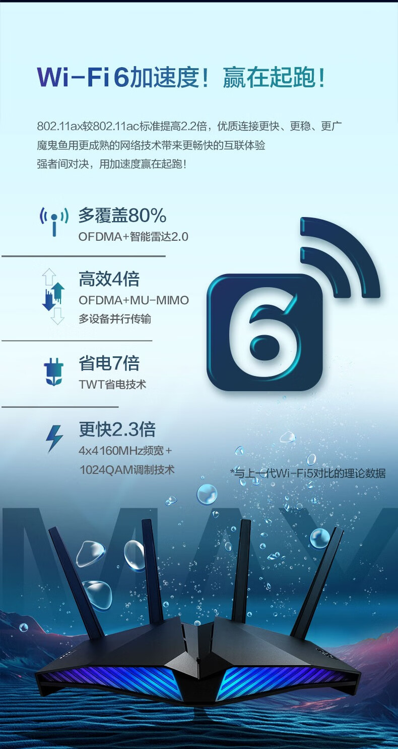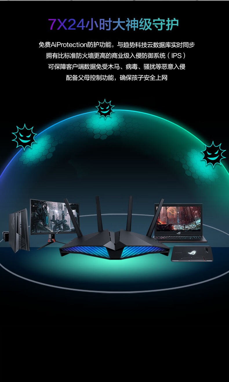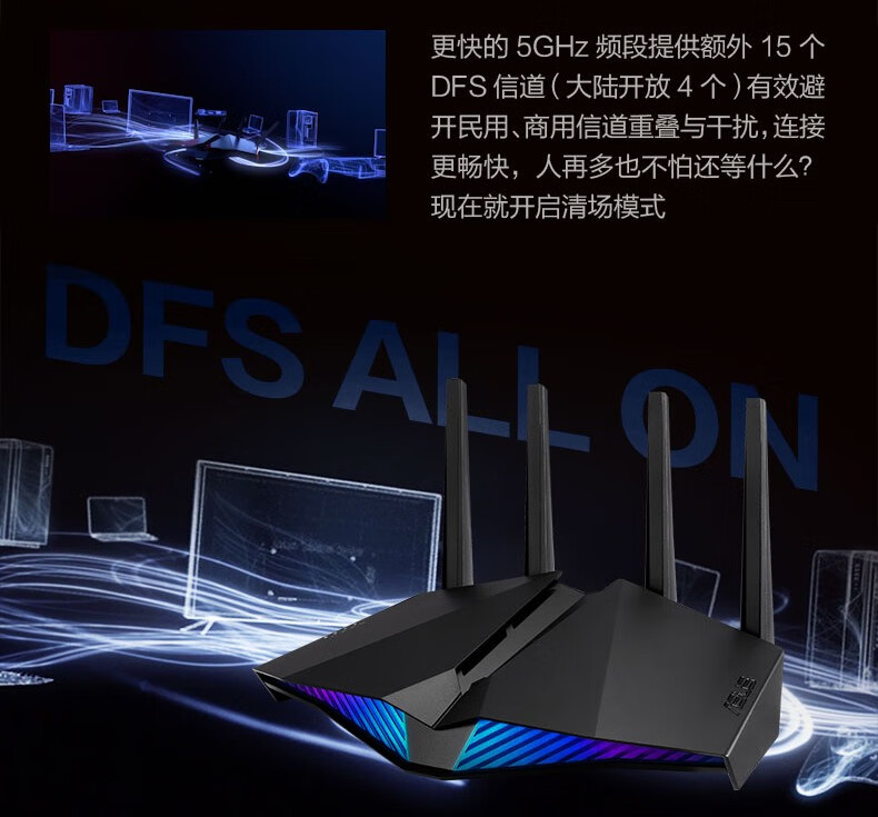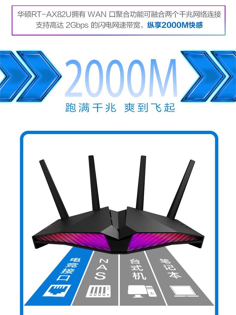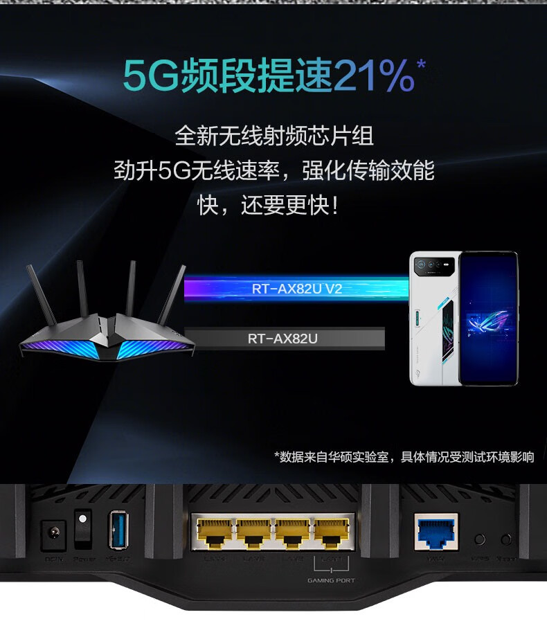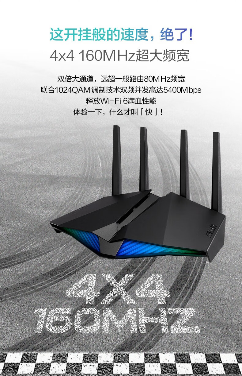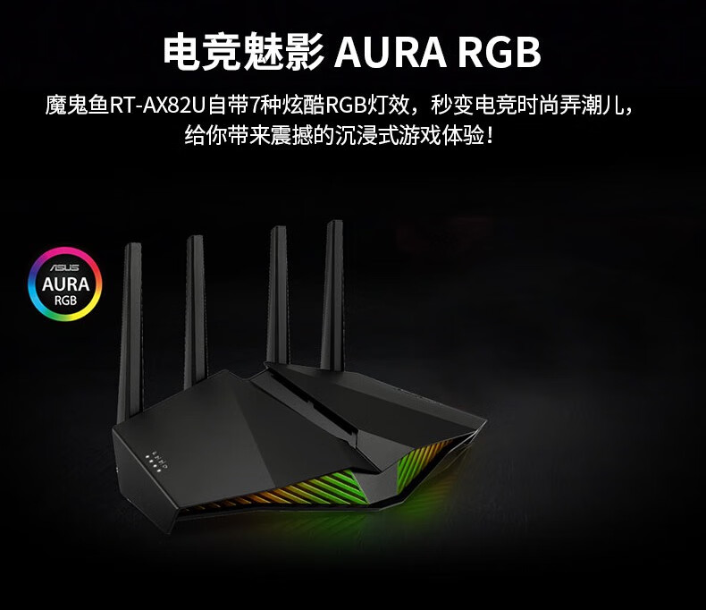 华硕(ASUS)RT-AX82U双频5400M全千兆路由无线路由器/RGB电竞灯效/WiFi6/电竞游戏路由【2023年5G增强版】