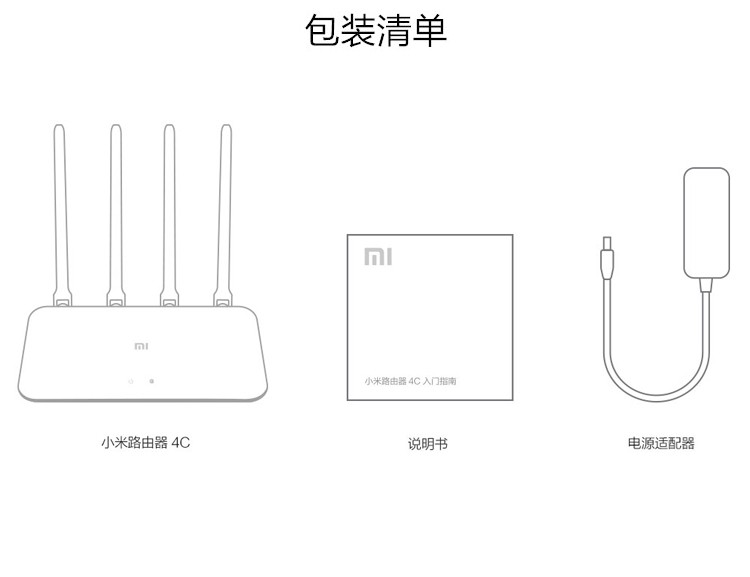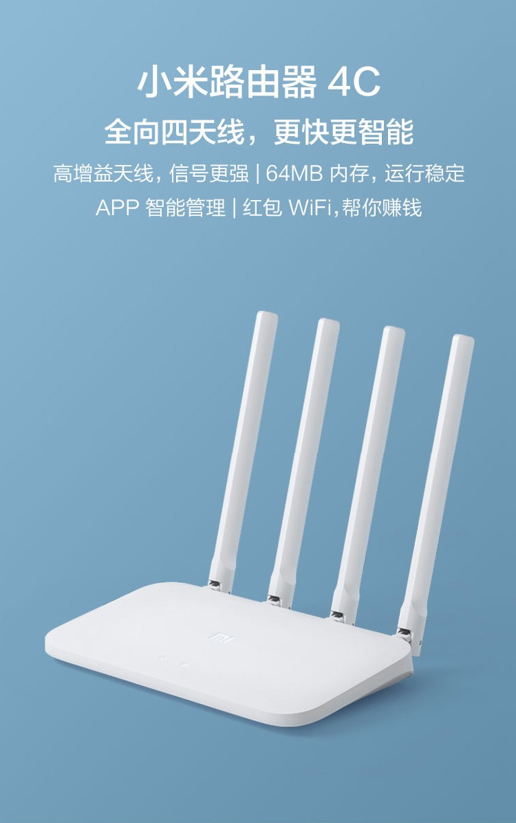 小米(MI) 路由器4C迷你智能4天线无线高速路由器wifi家用穿墙王漏油器 小米路由器4C