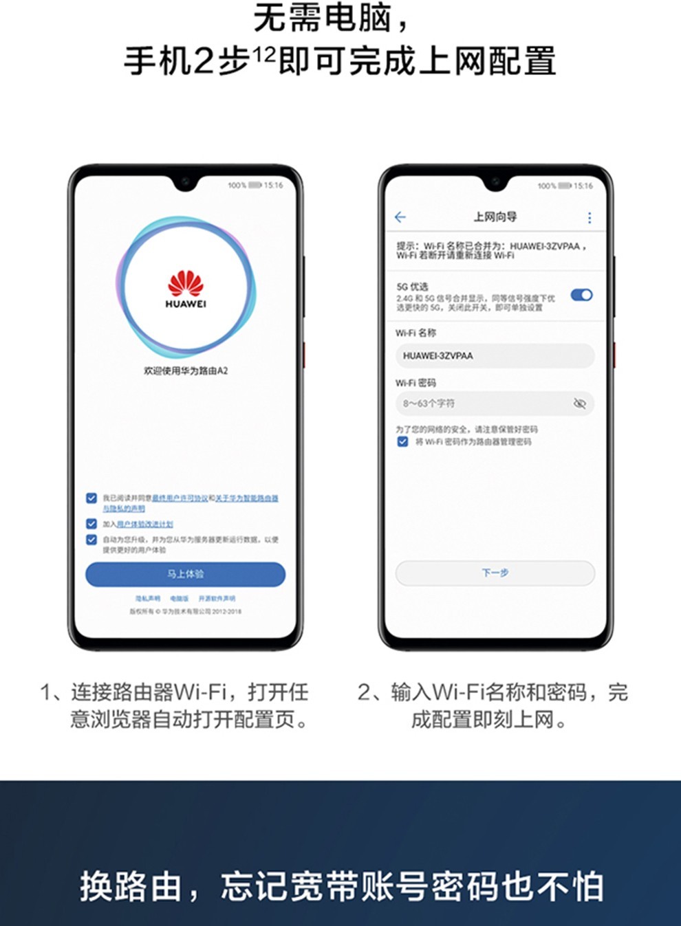 华为 A2全千兆穿墙王三频5G优选家用WiFi信号放大器增强智能无线路由器