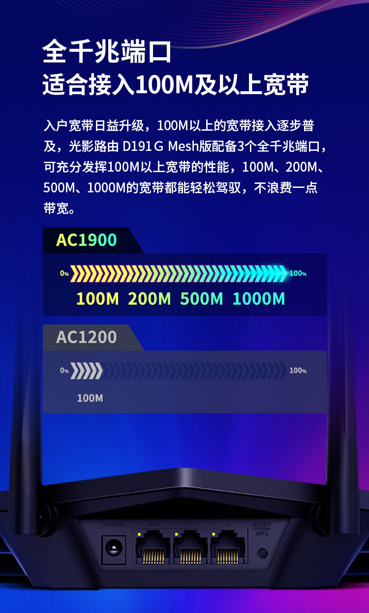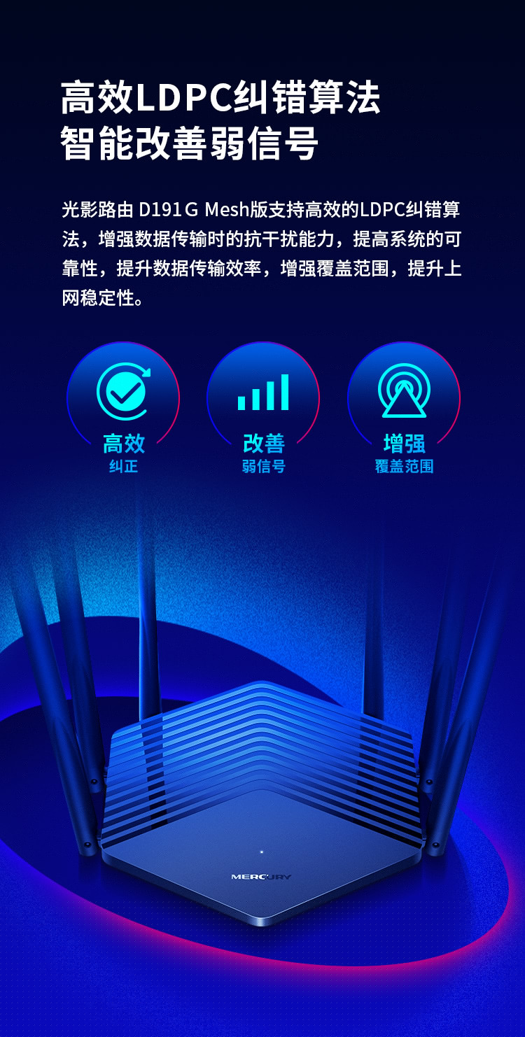 水星(MERCURY)D191G Mesh版 双千兆路由器 1900M无线家用 5G双频6信号放大器 光纤宽带高速WIFI穿墙