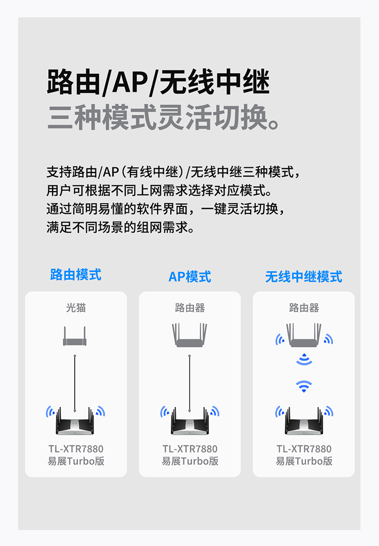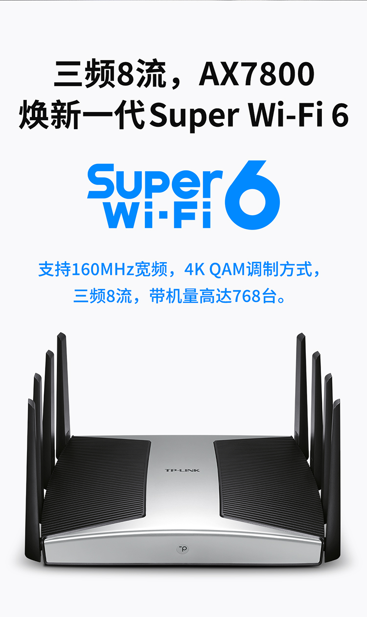 TP-LINK【飞流系列】AX7800三频千兆无线路由器 WiFi6智能游戏路由 Mesh XTR7880易展Turbo版