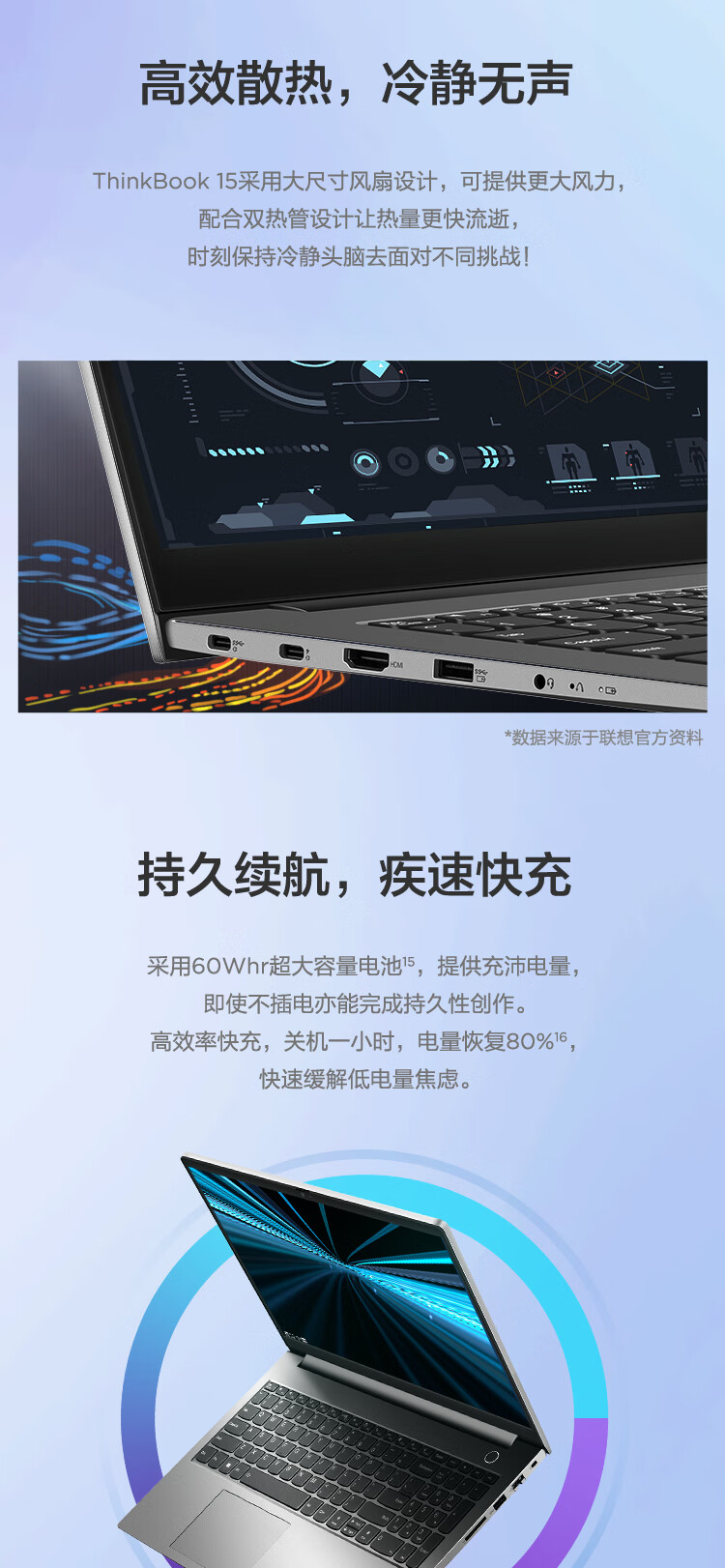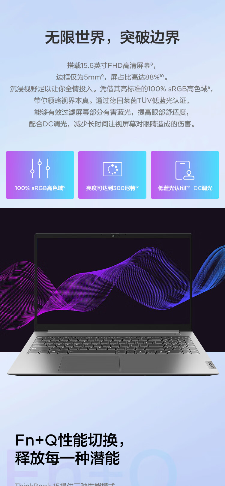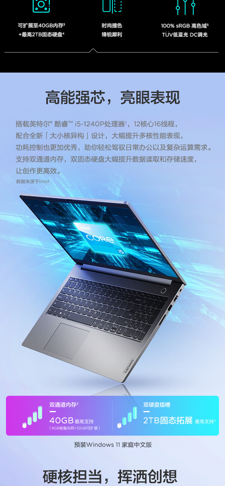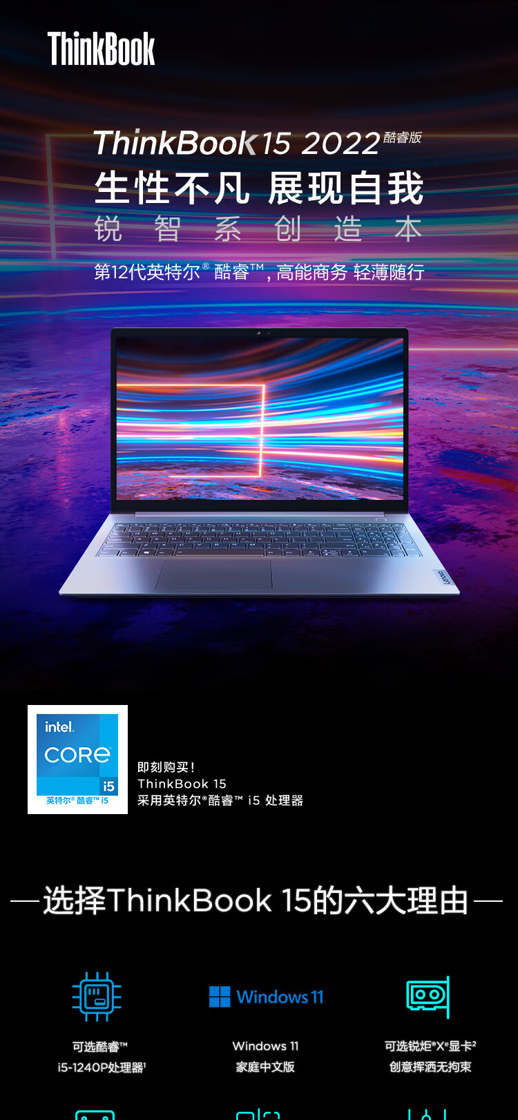 联想ThinkBook 15 2022款 酷睿版 12代英特尔酷睿i5 15.6英寸轻薄笔记本电脑(i5-1240P 16G 1T