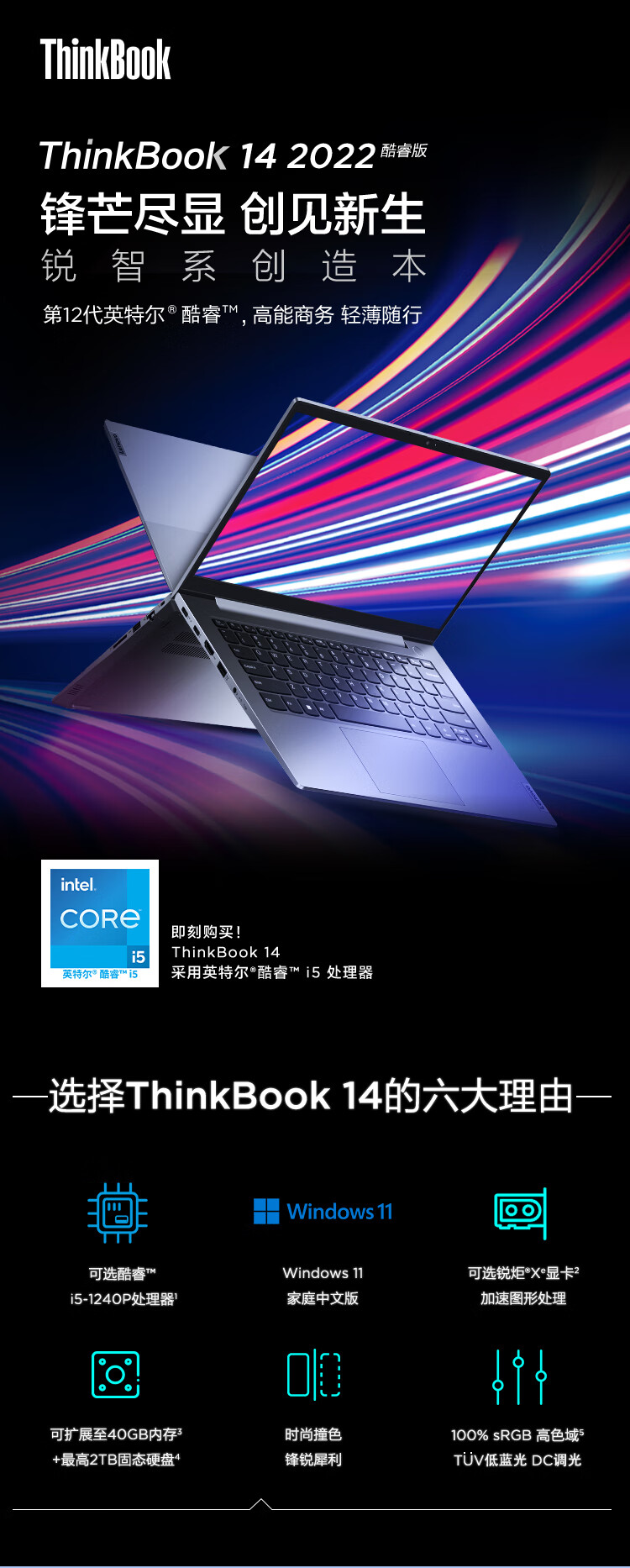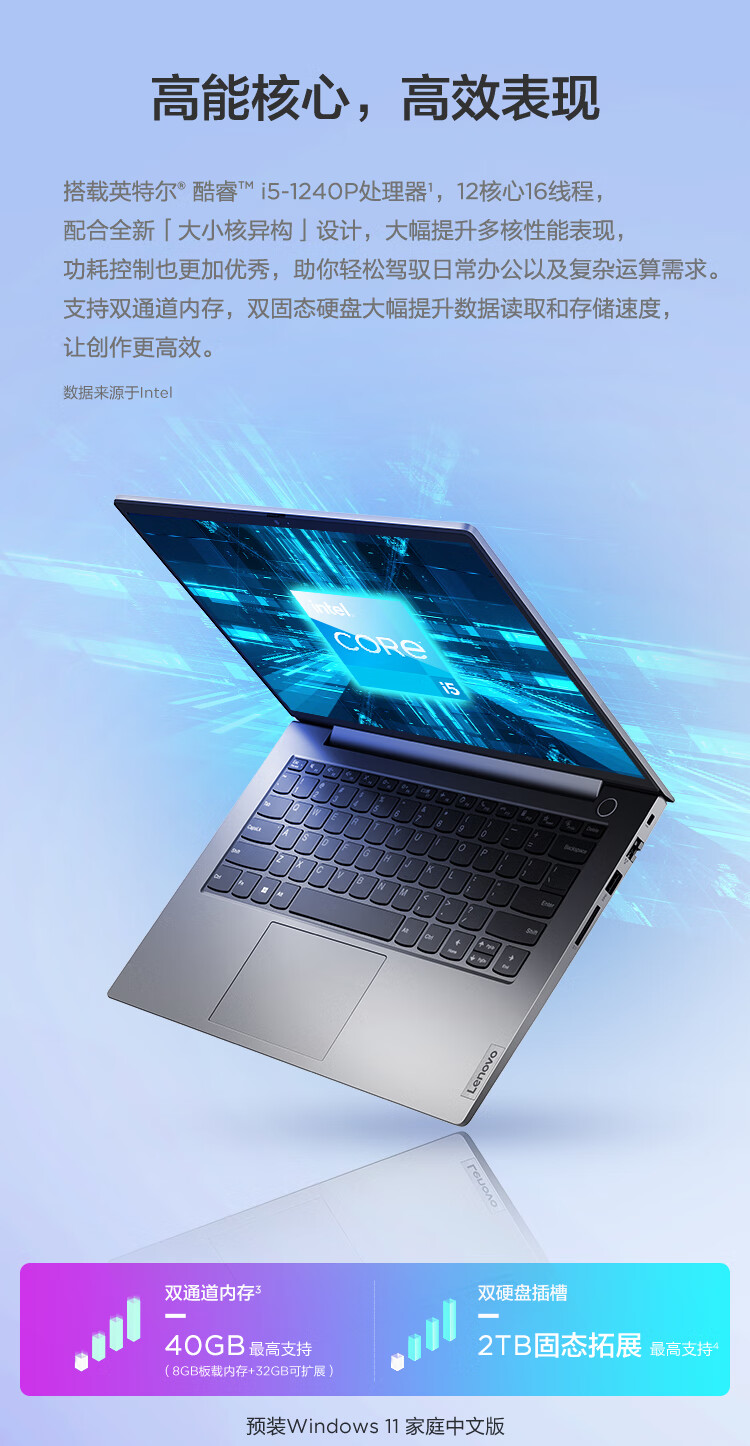 联想ThinkBook 14 2022款 酷睿版 12代英特尔酷睿i5 14英寸轻薄笔记本电脑(i5-1240P 16G 1T