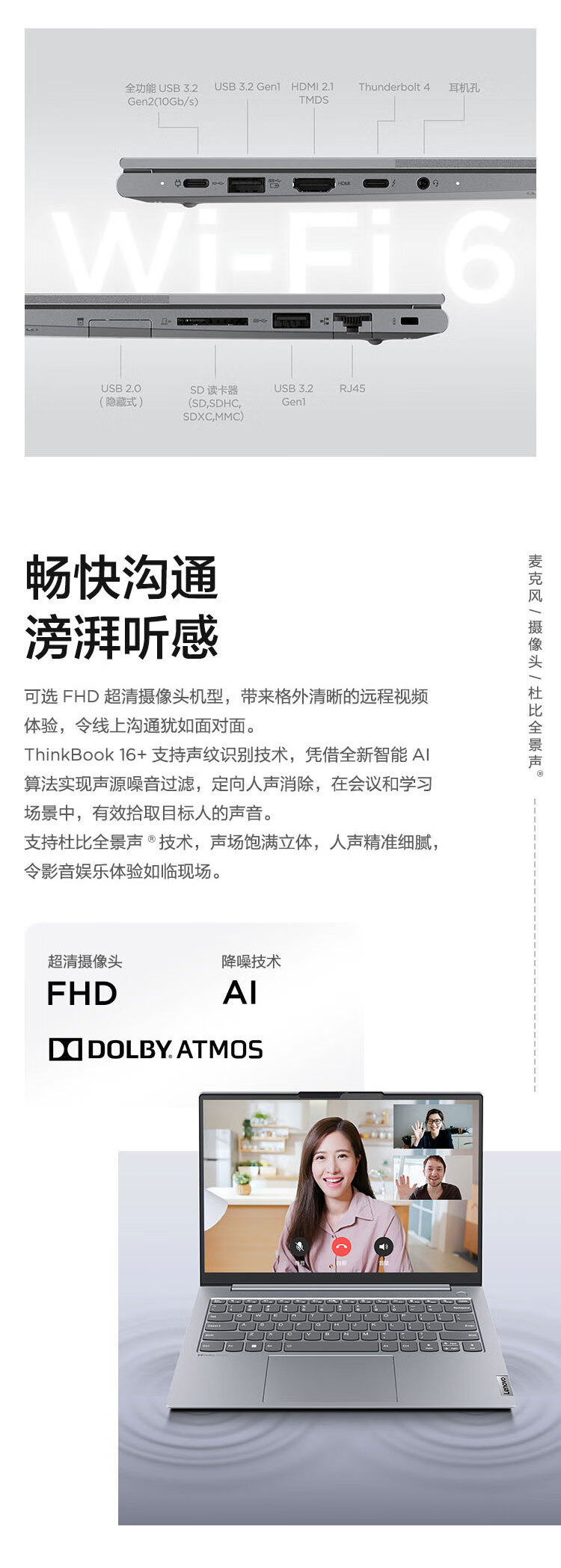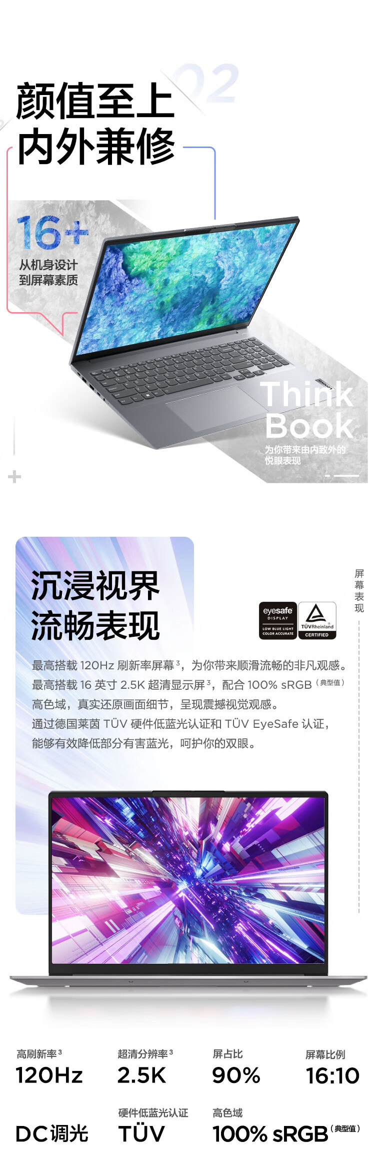 联想ThinkBook 16+ 英特尔酷睿i5 笔记本电脑 2022款16英寸标压轻薄本i5-12500H 16G 512G