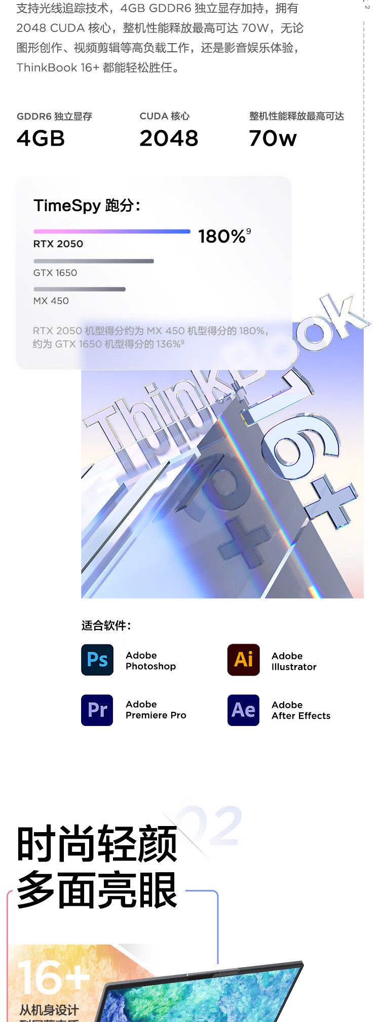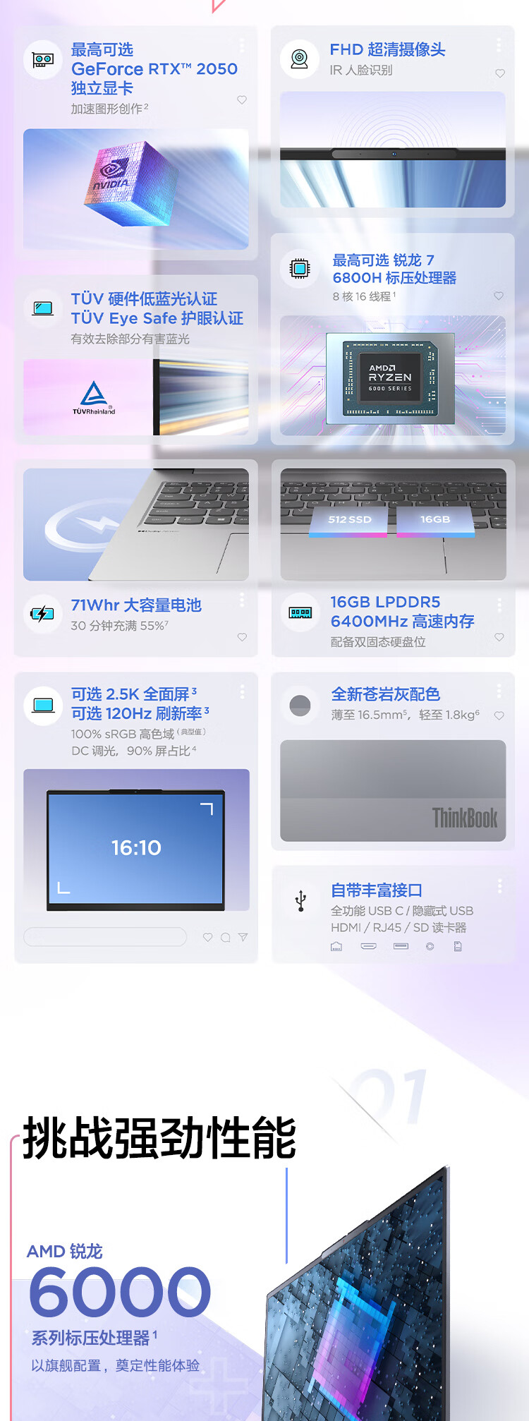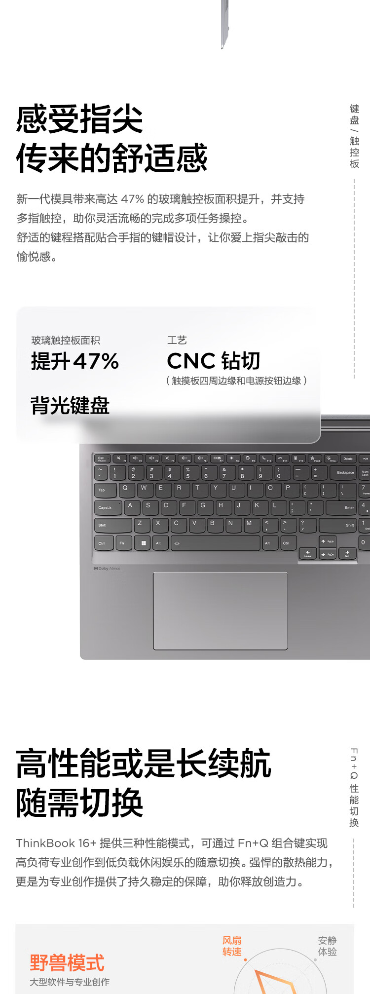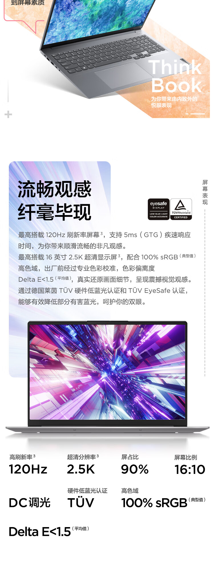 联想ThinkBook 16+ 锐龙标压笔记本电脑 全新2022款 16英寸标压轻薄本R7-6800H 16G 512G 2.5K