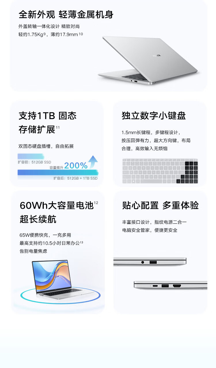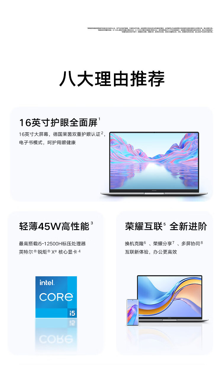 荣耀笔记本电脑全新MagicBook X 16 2022 12代酷睿i5 16+512 16英寸高性能轻薄本