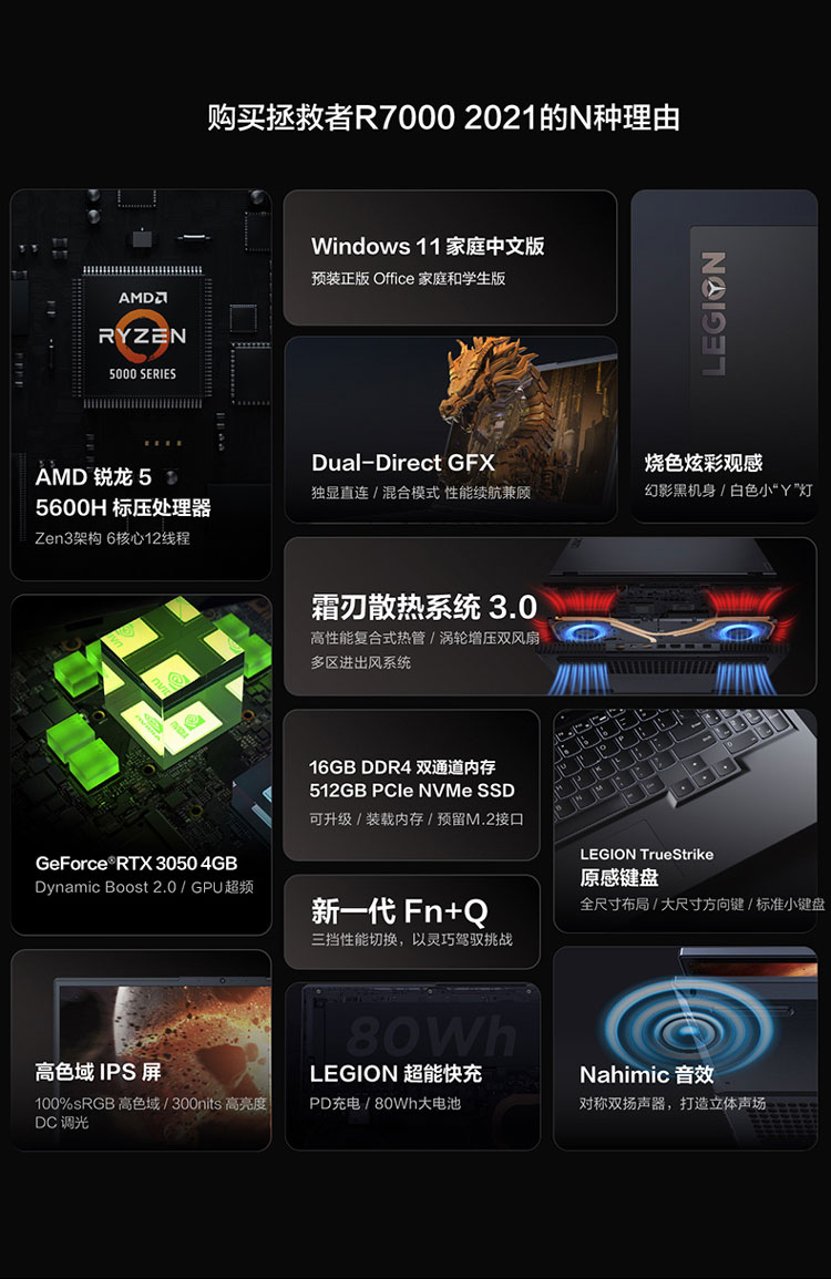 联想(Lenovo) 拯救者R7000 15.6英寸 游戏笔记本电脑 R7-5800H 16G 512G