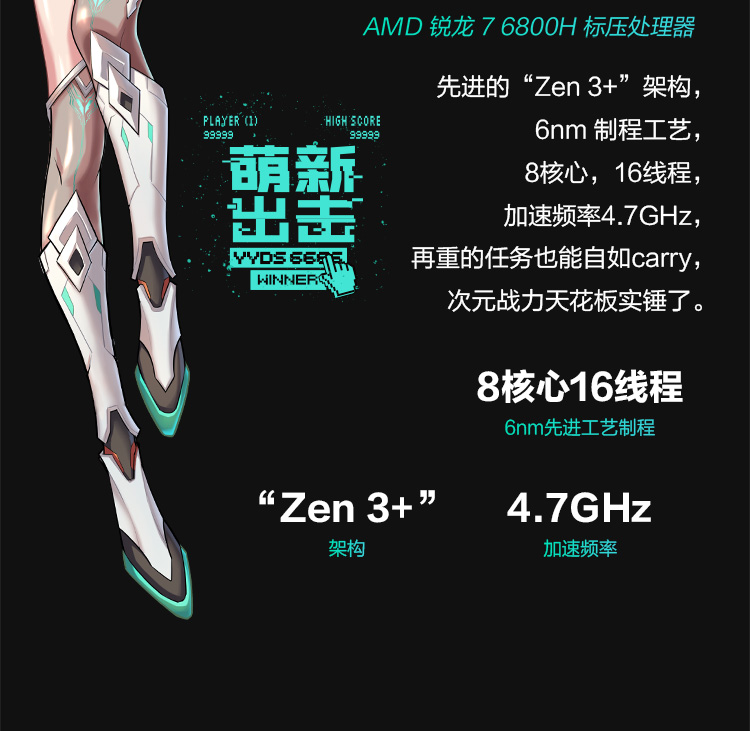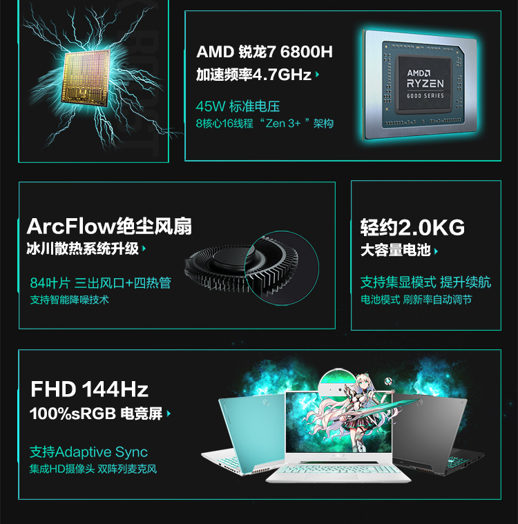 华硕(ASUS)天选3 锐龙版 15.6英寸游戏本 笔记本电脑(R7-6800H 16G 512G RTX3050
