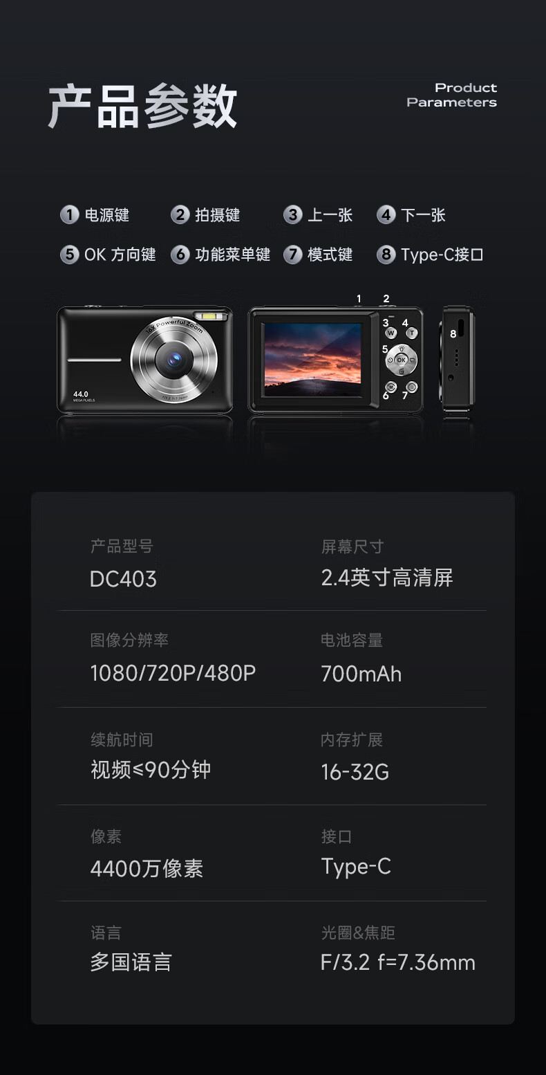 松典(SONGDIAN)数码相机学生校园迷你卡片机CMOS高清高中生照相机 星际黑