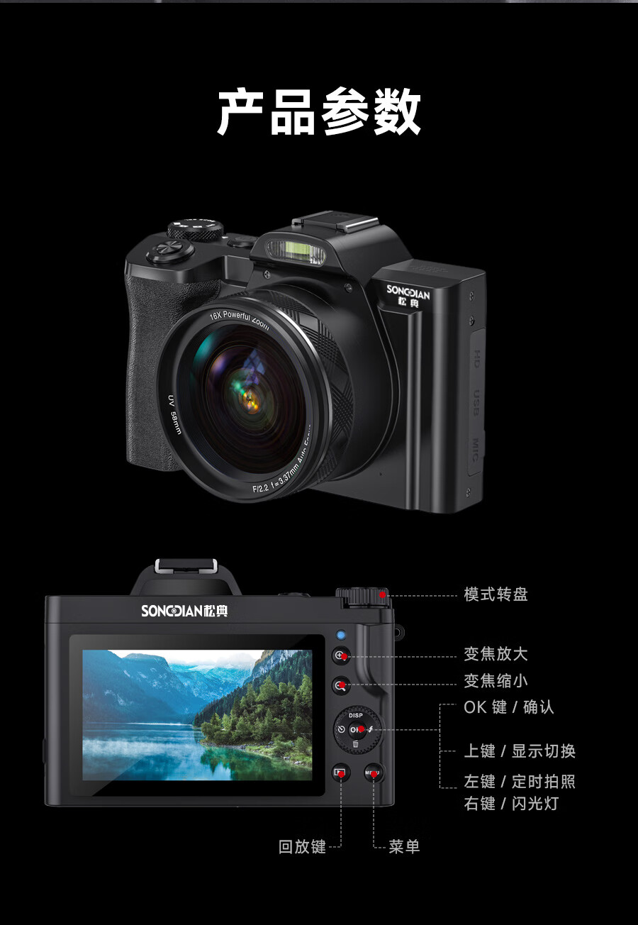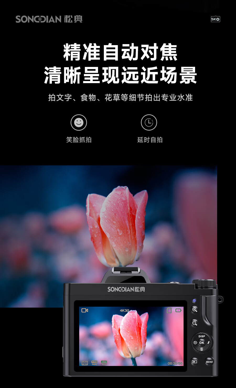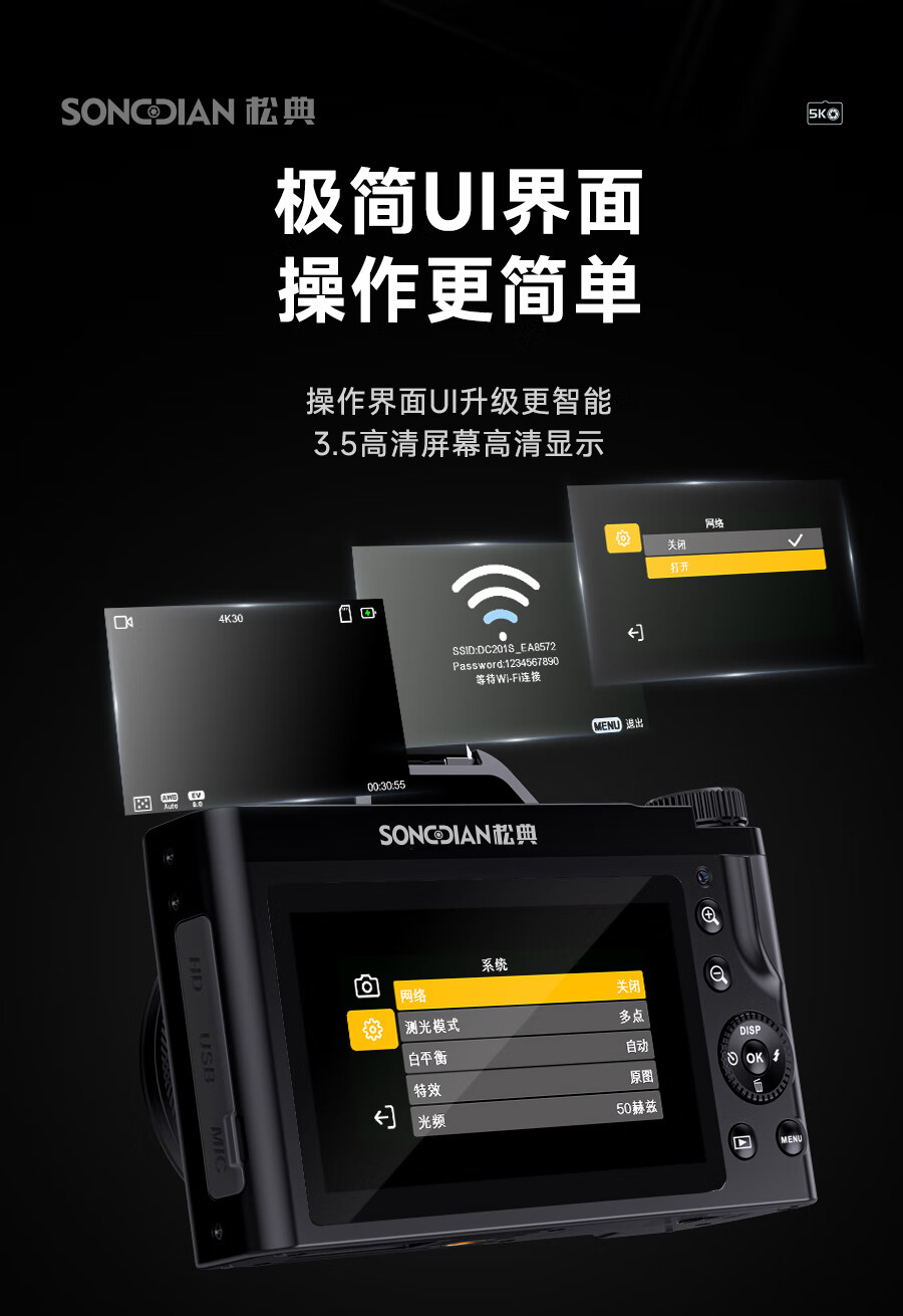 松典(SONGDIAN)数码相机5K高清单反微单照相机vlog防抖自动对焦 官方标配+闪光灯套装