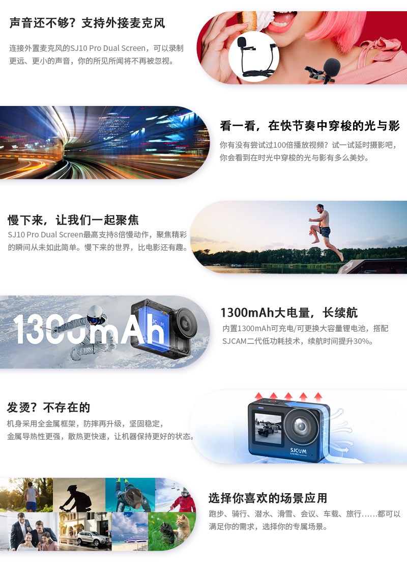 SJCAM SJ10Pro双彩屏运动相机4k超清摩托车头盔骑行记录仪防水防抖vlog360度拍摄像机 SJ10Pro双屏【新品】旗舰版