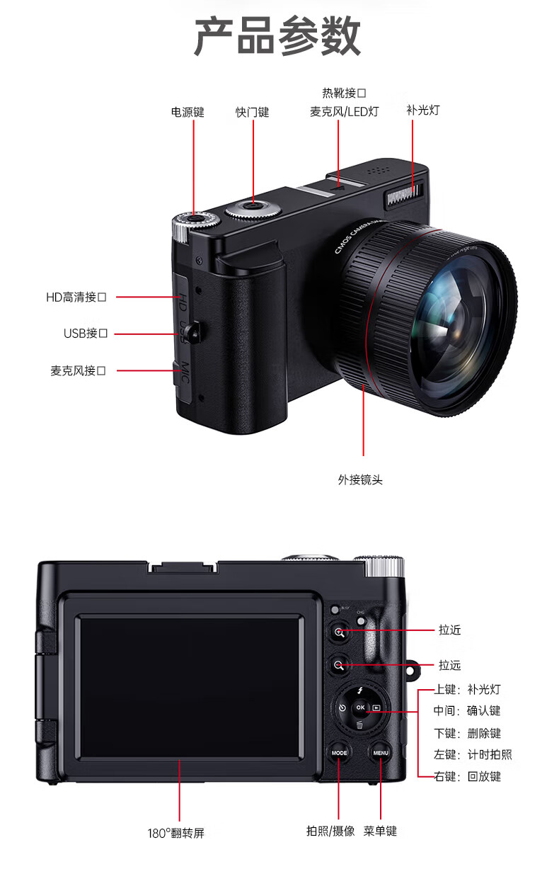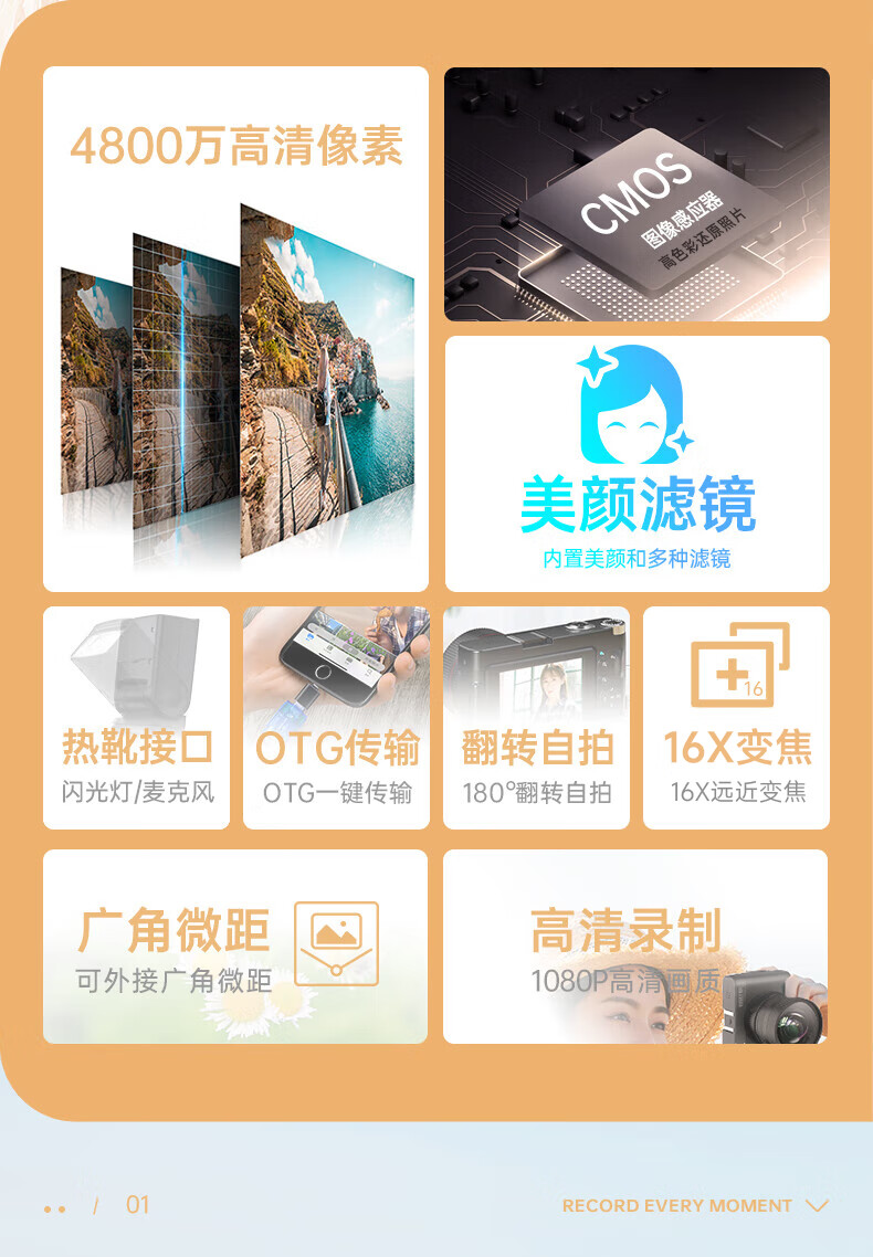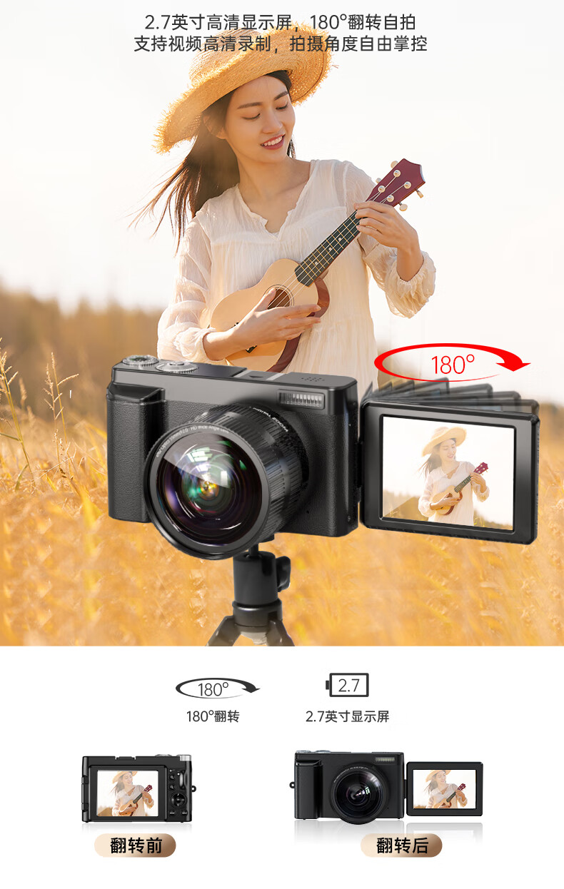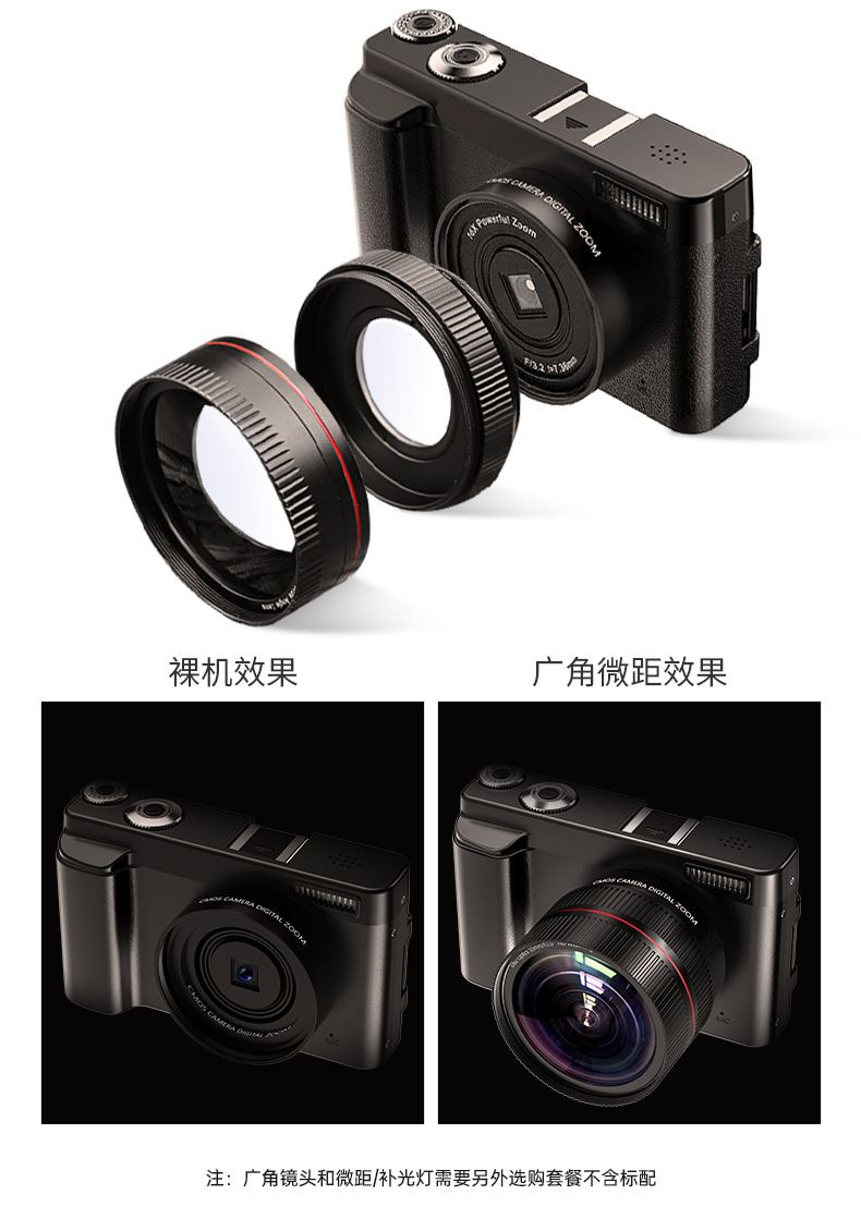 松典(SONGDIAN) DC101L 数码相机ccd入门傻瓜微单vlog视频学生翻转自拍照相机 官方标配+广角镜套餐