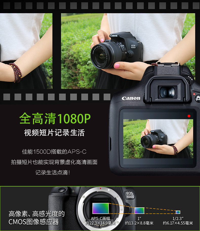 佳能(Canon) EOS 1500D单反相机 入门级家用数码单反相机学生旅游