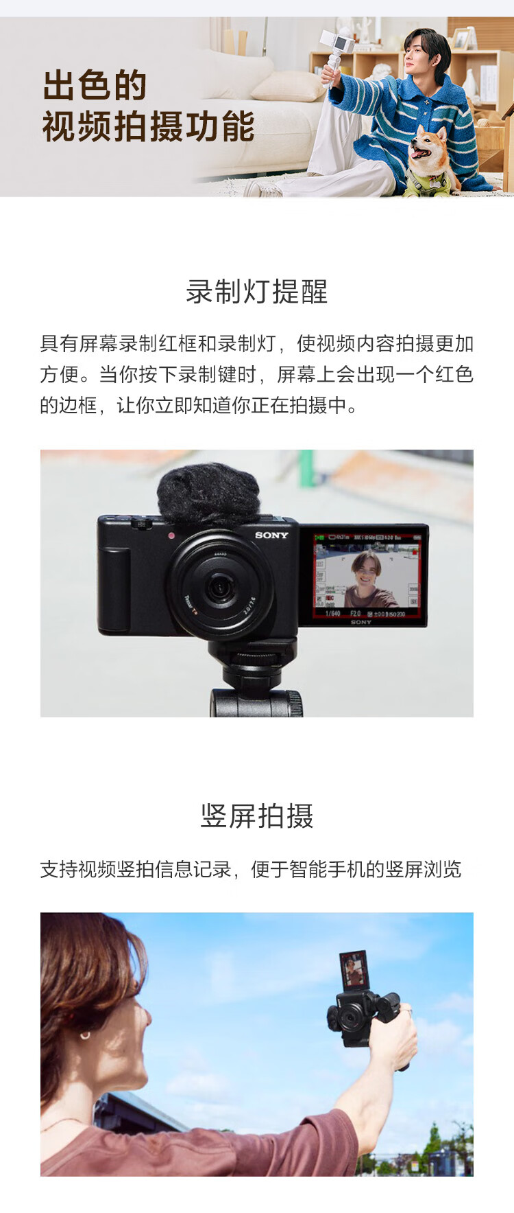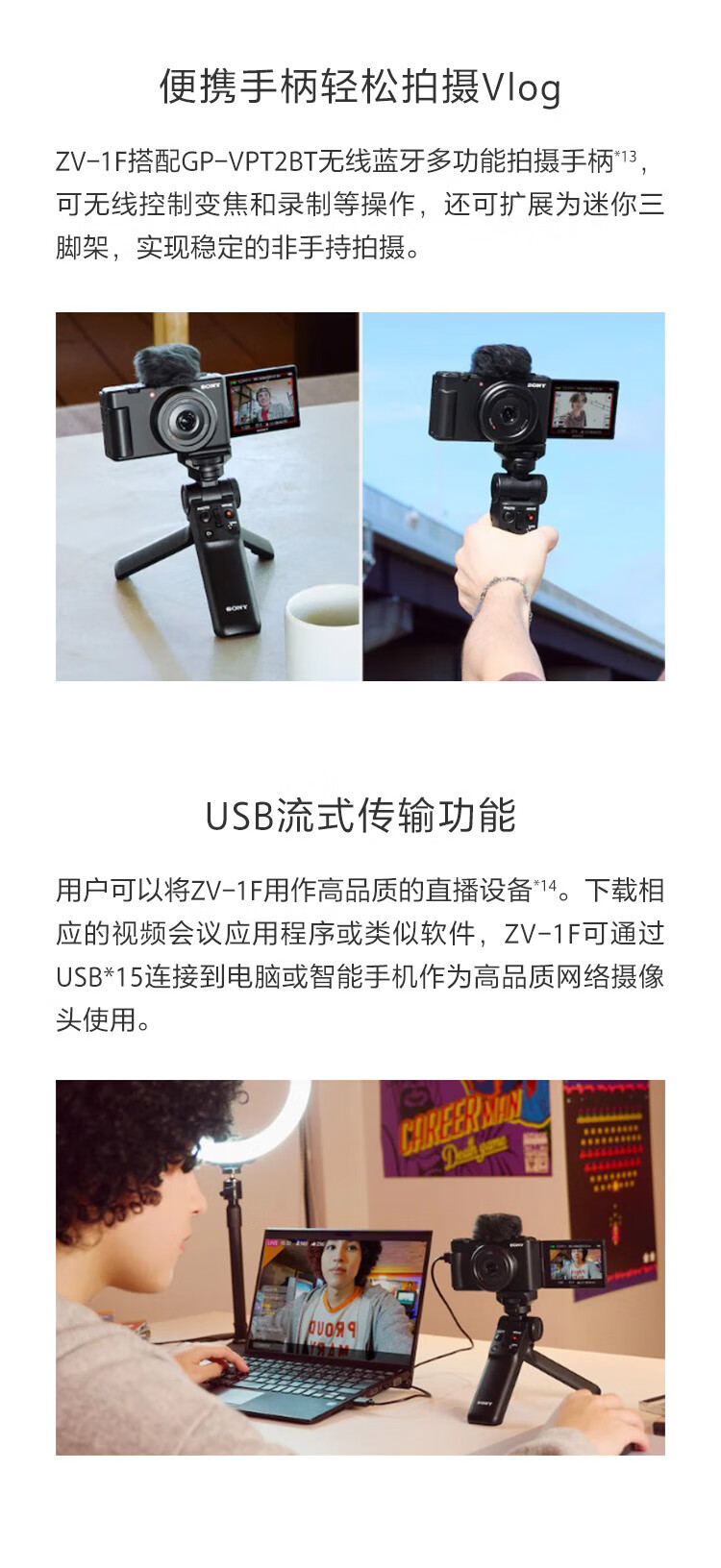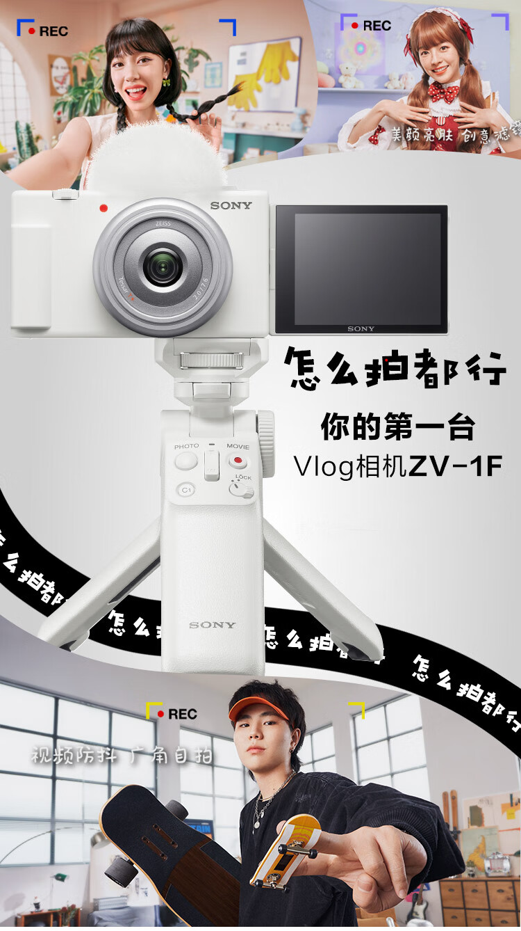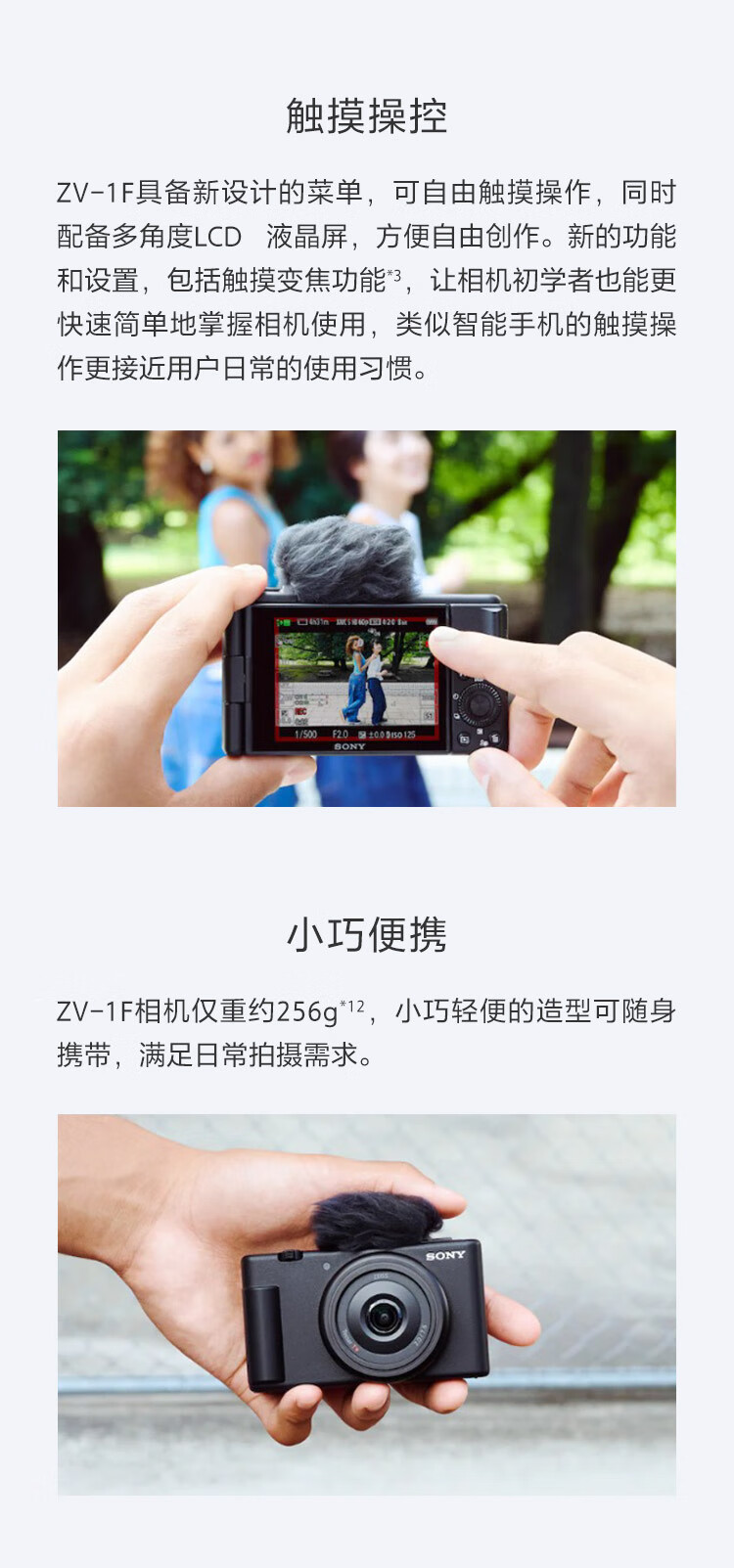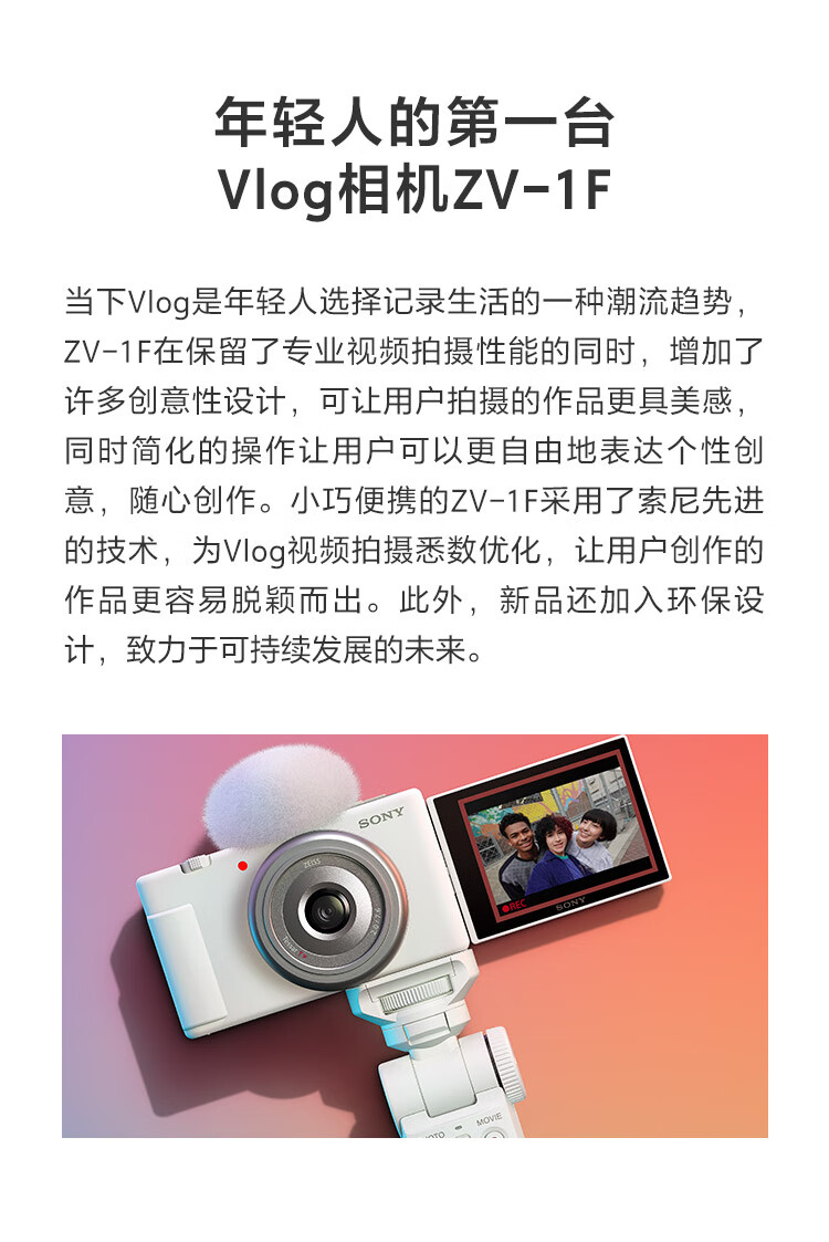 索尼(SONY)ZV-1F 数码相机 Vlog/4K视频/美肤拍摄/学生入门/超广角