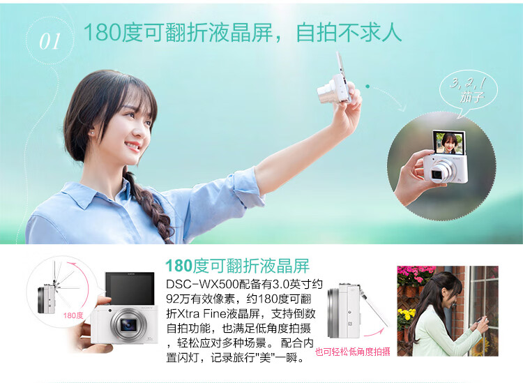 索尼(SONY)DSC-WX500便携数码相机无线照相机卡片机30倍大变焦WiFi连接