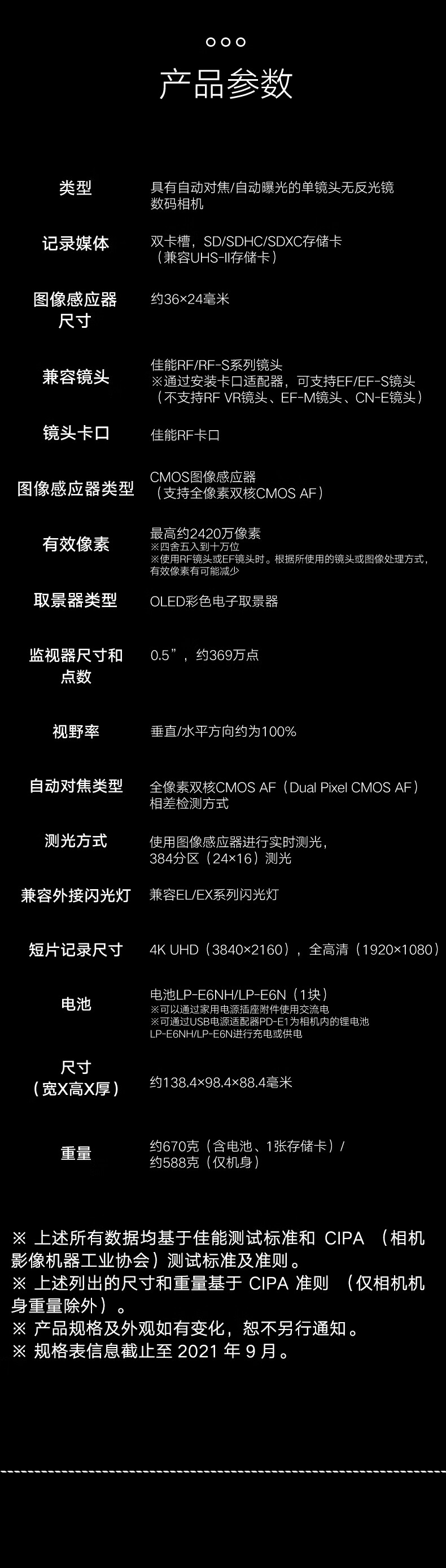 佳能(Canon)EOS R6 Mark II 新标准全画幅微单数码相机R6二代 单机身