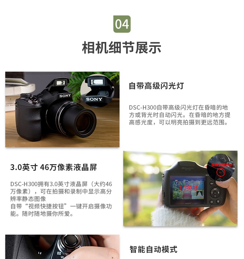 SONY 索尼 DSC-H300 长焦数码相机黑色 家用旅游照相机2010万像素 35倍光学变焦