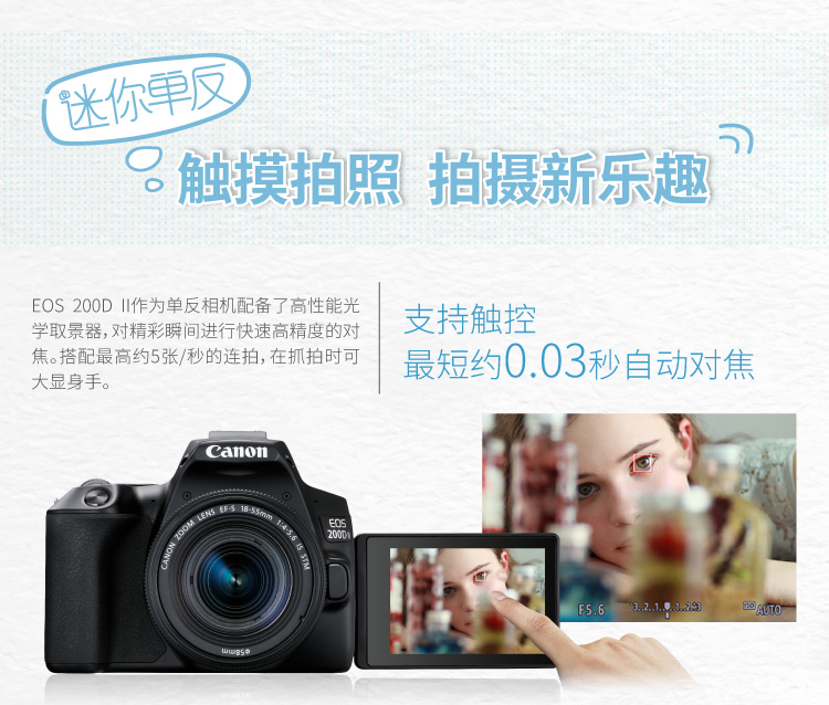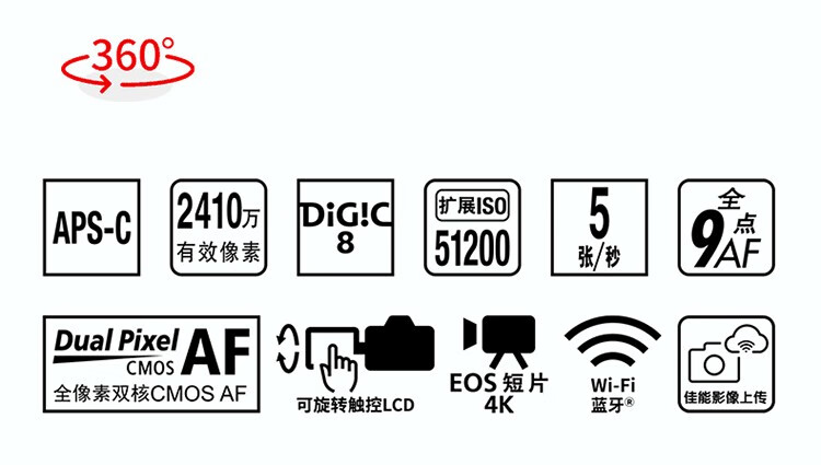 佳能(Canon) EOS200d二代入门单反高清vlog数码照相机视频直播相机 EOS 200D