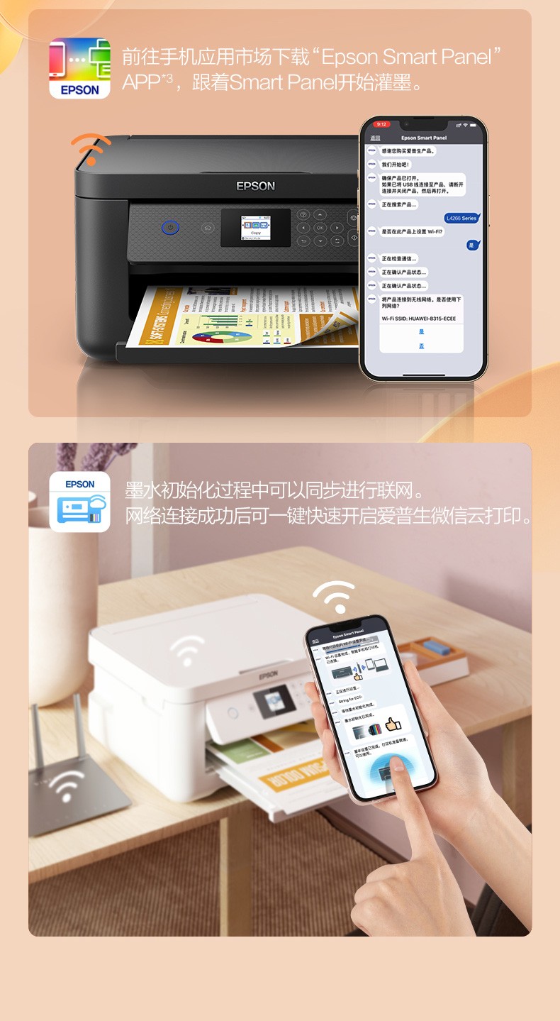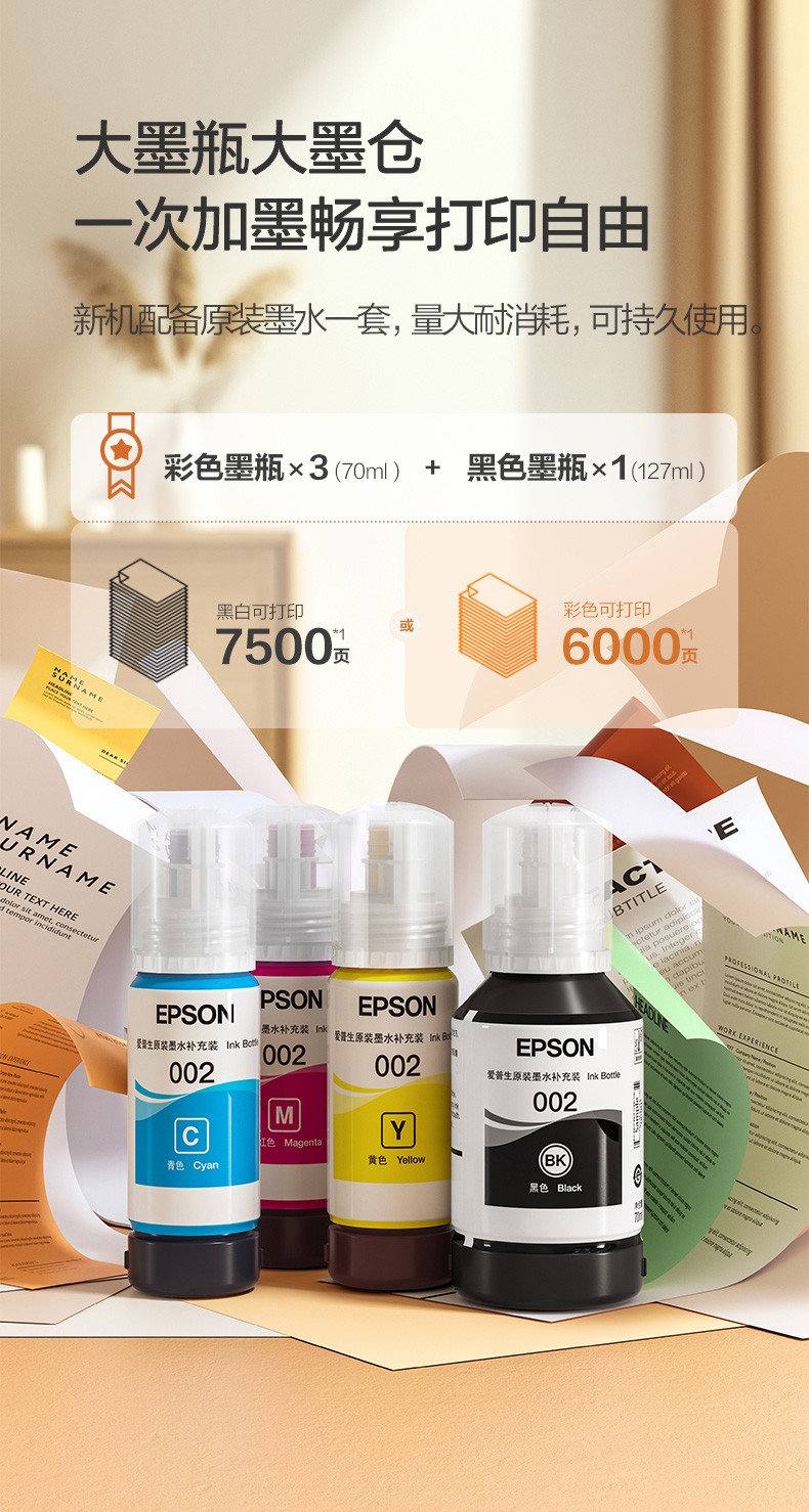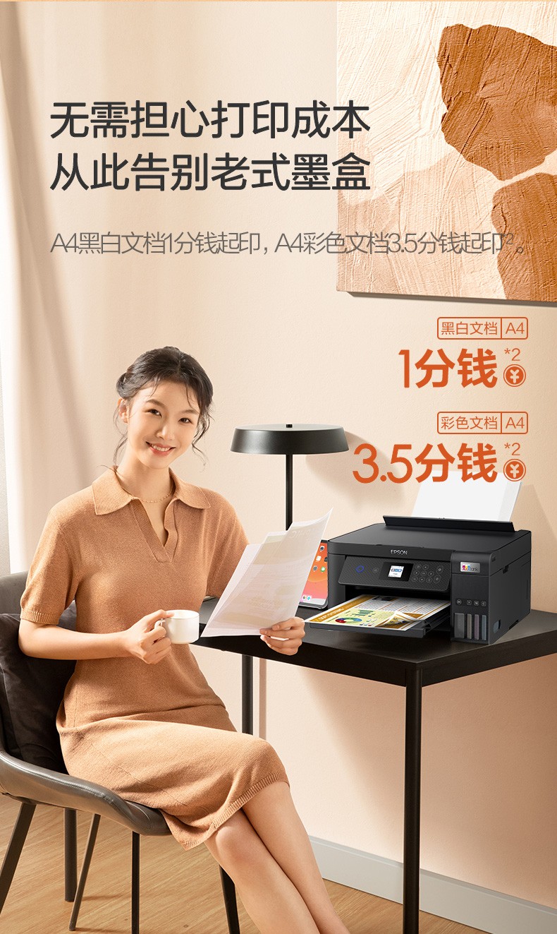 爱普生(EPSON) 彩色墨仓式无线双面打印机办公家用喷墨复印扫描一体机
