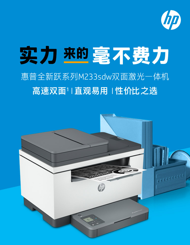 惠普(HP)M233SDW A4幅面黑白激光一体机 双面打印/复印/ADF扫描三合一 29页/分 USB+Wifi