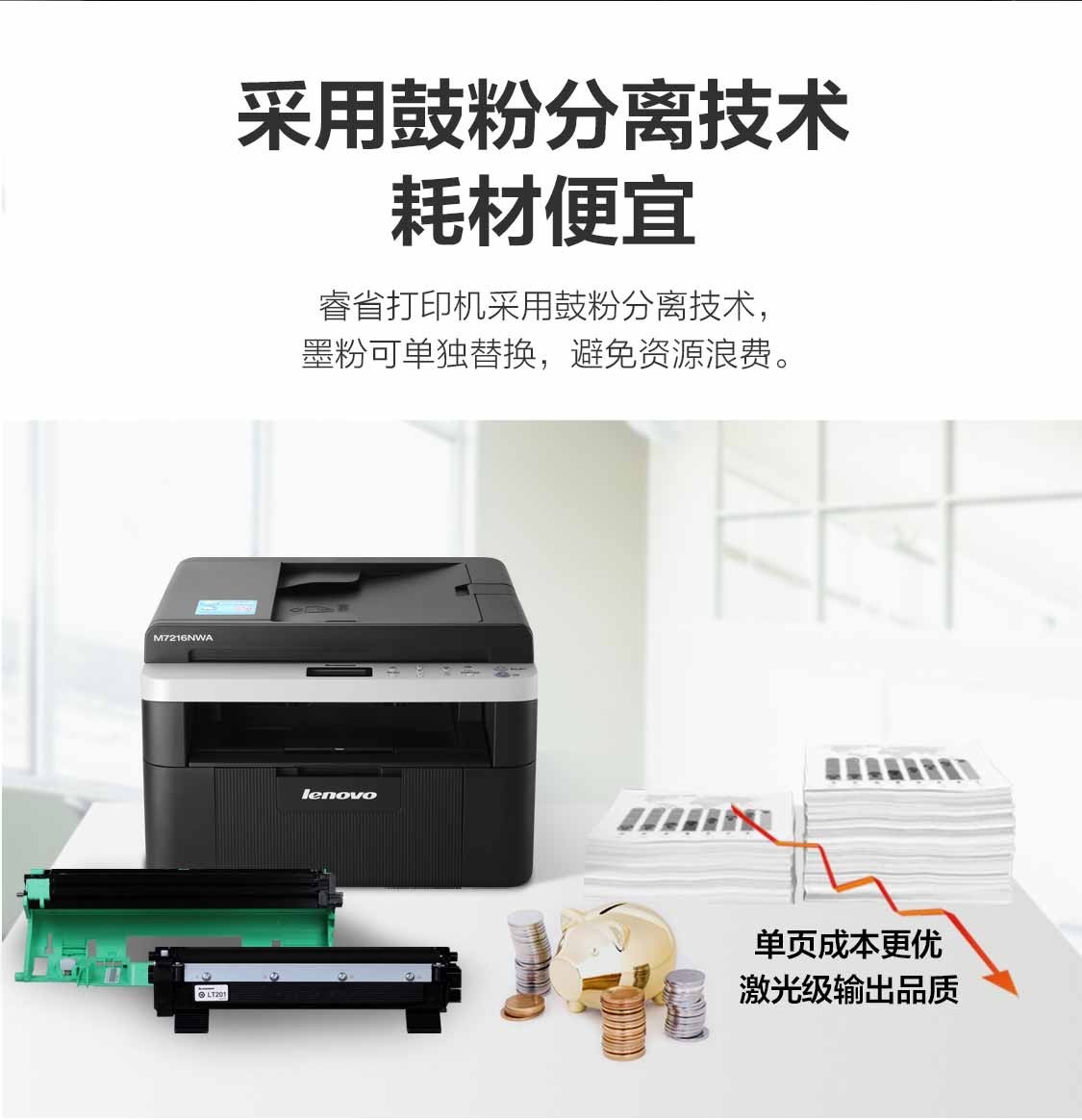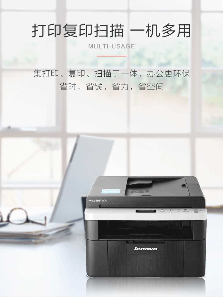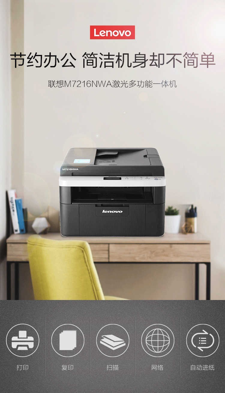 联想(Lenovo)M7216nwa黑白激光打印机 家用办公自动输稿器 有线+无线打印复印扫描一体机 M7206W