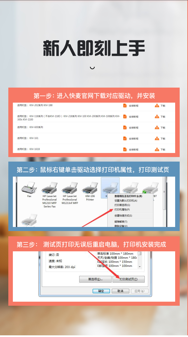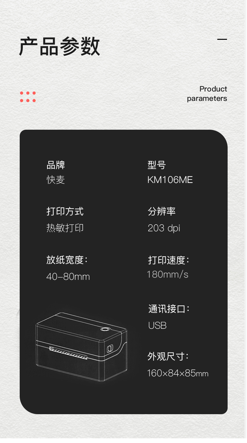 快麦KM106ME热敏标签打印机 电脑连接USB
