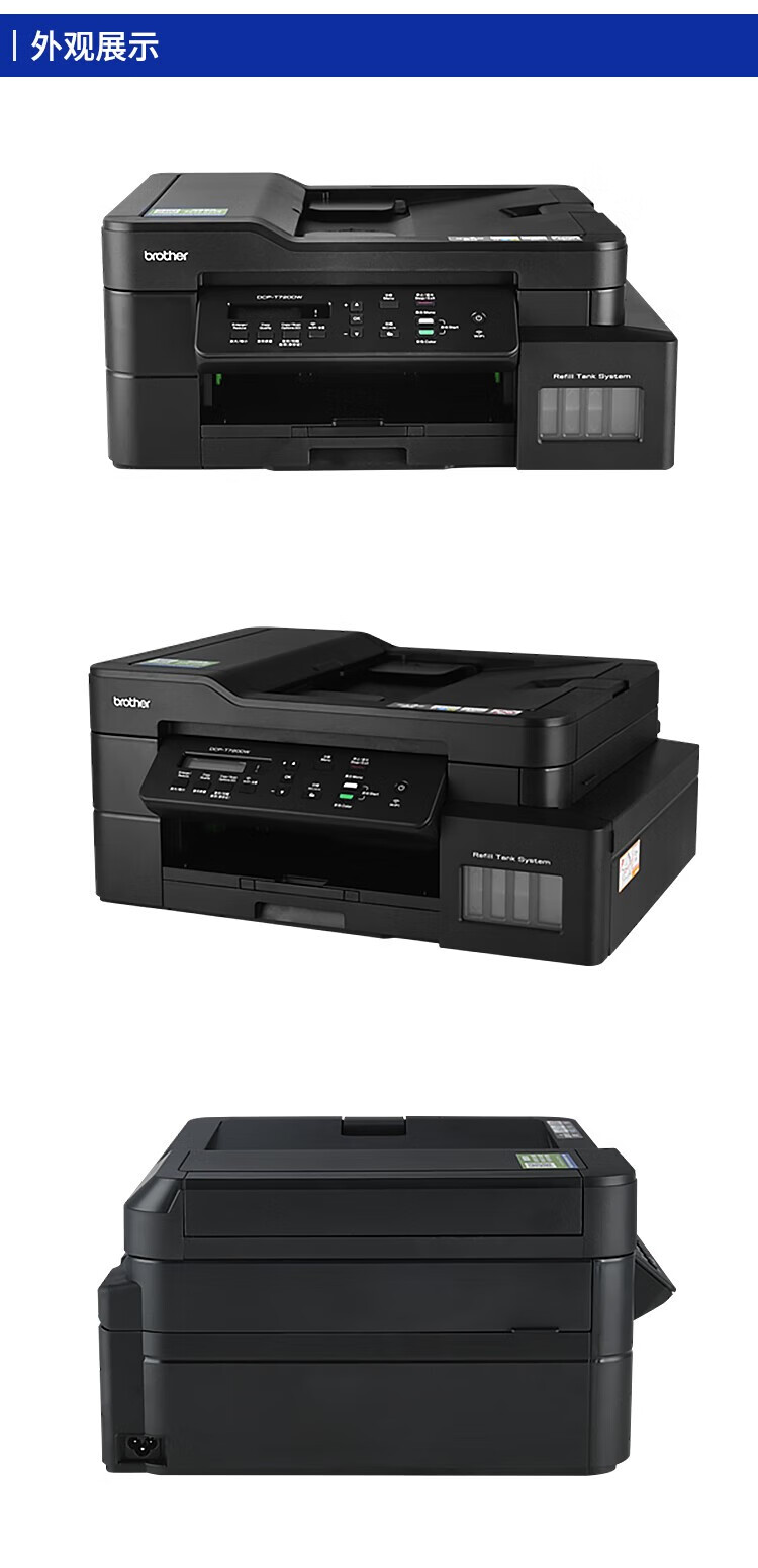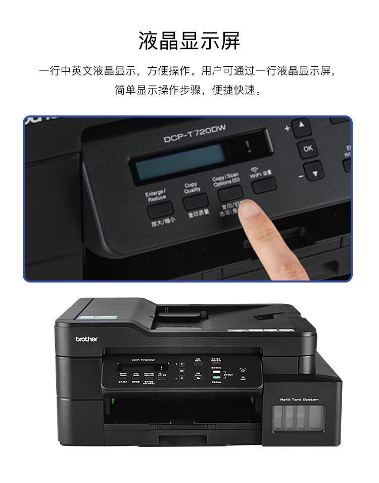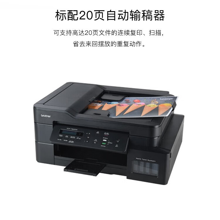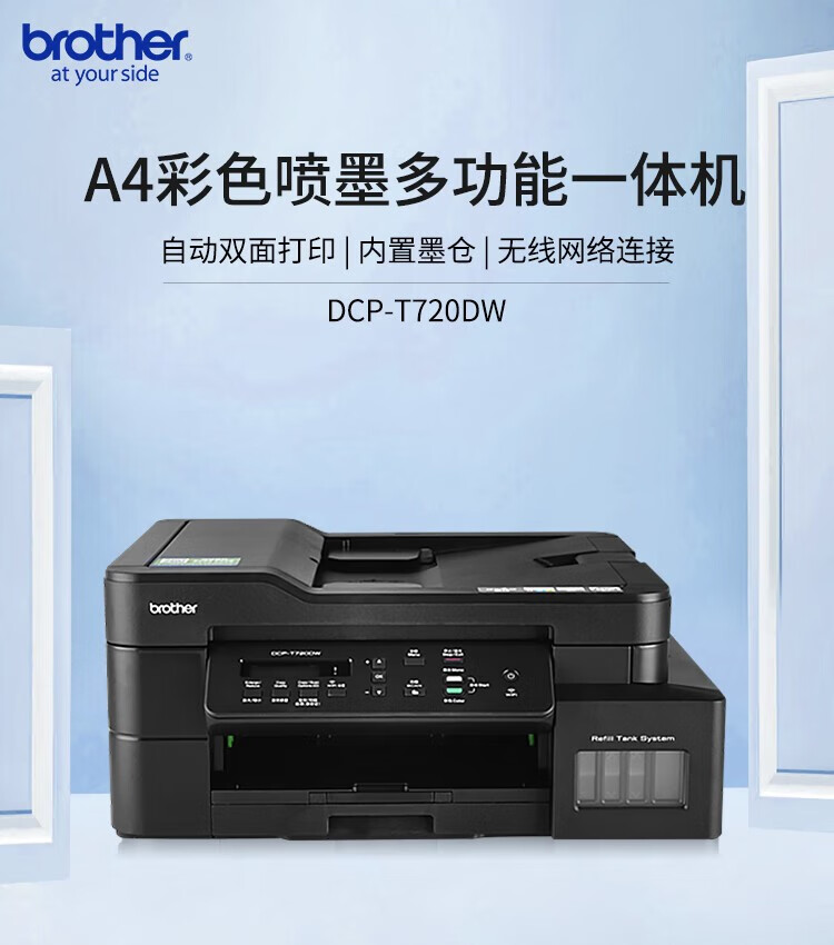 兄弟(BROTHER) DCP-T720DW A4幅面彩色墨仓一体机无线双面家用办公打印机多页输稿器