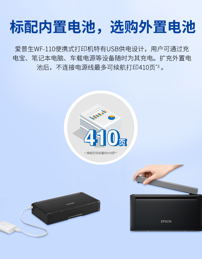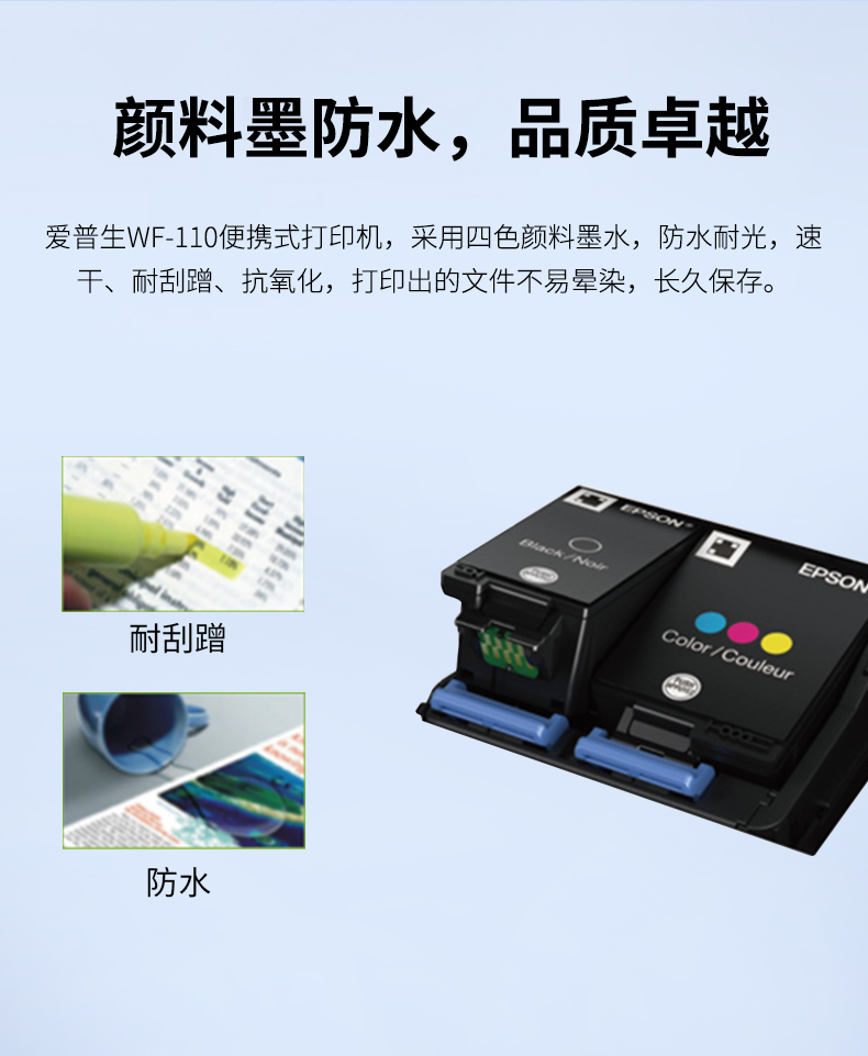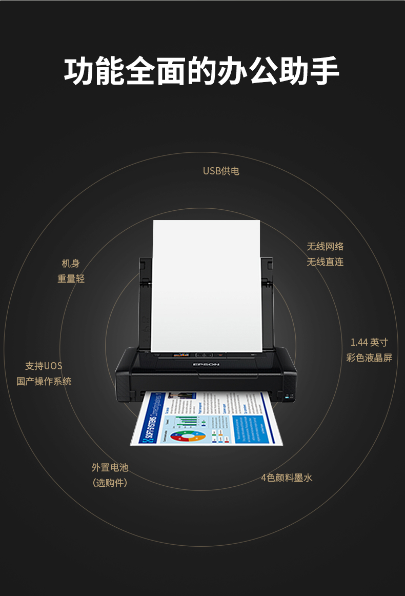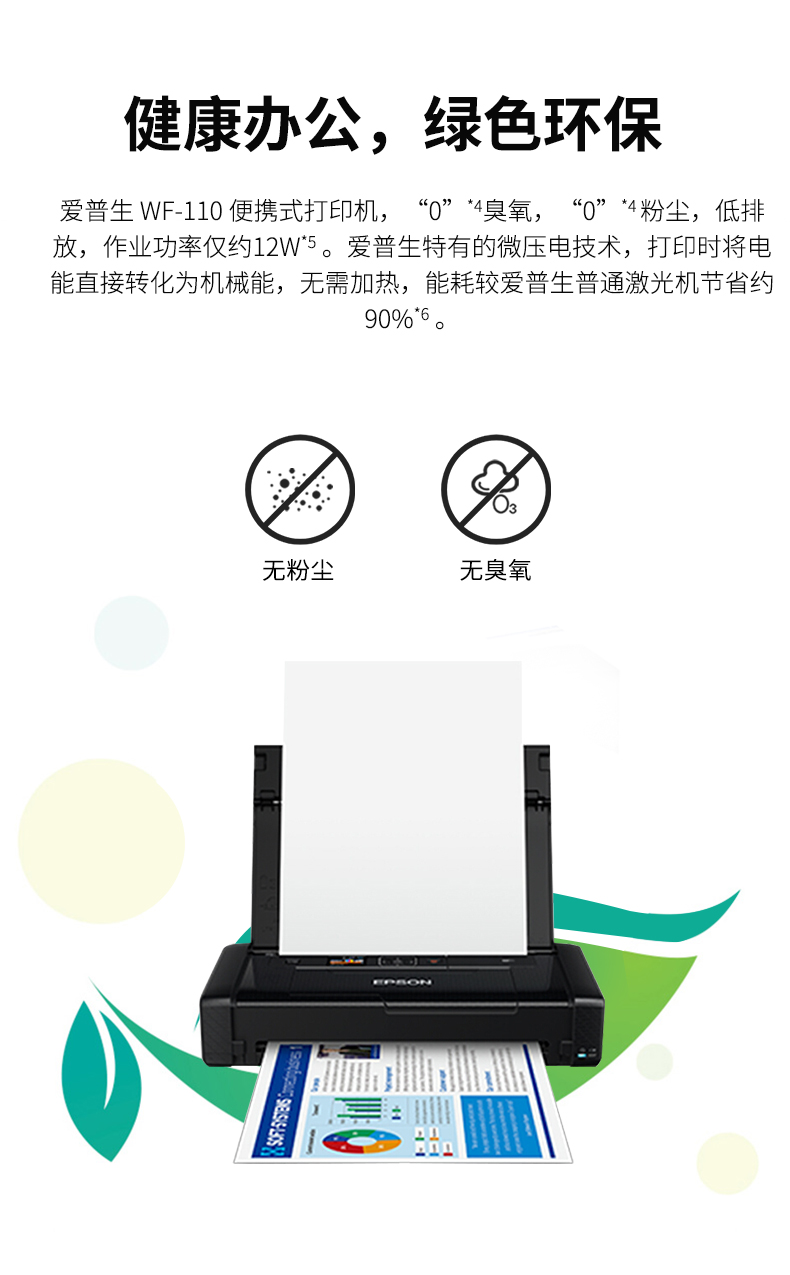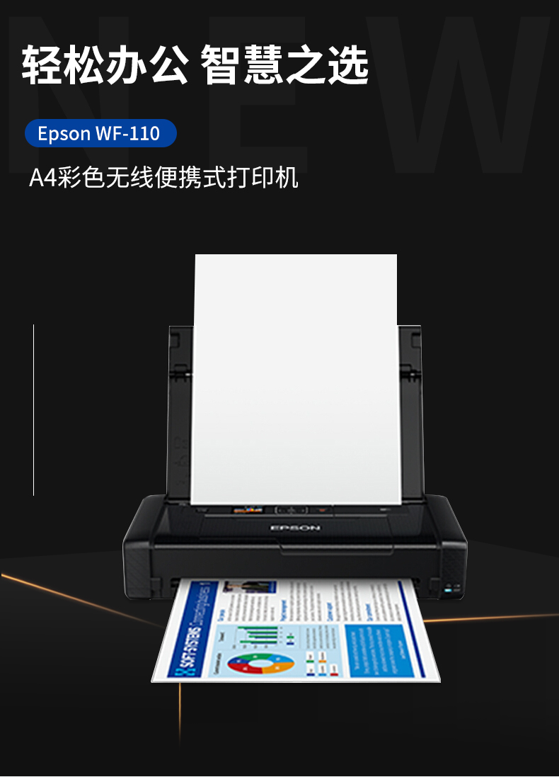 爱普生(EPSON) WF-110 A4彩色无线便携式打印机 内置电池/USB供电 工业设备 WF-110